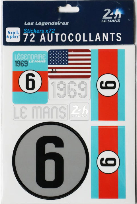 24H LEGENDE – Pochette de 5 planches d’autocollants repositionnables – 1969