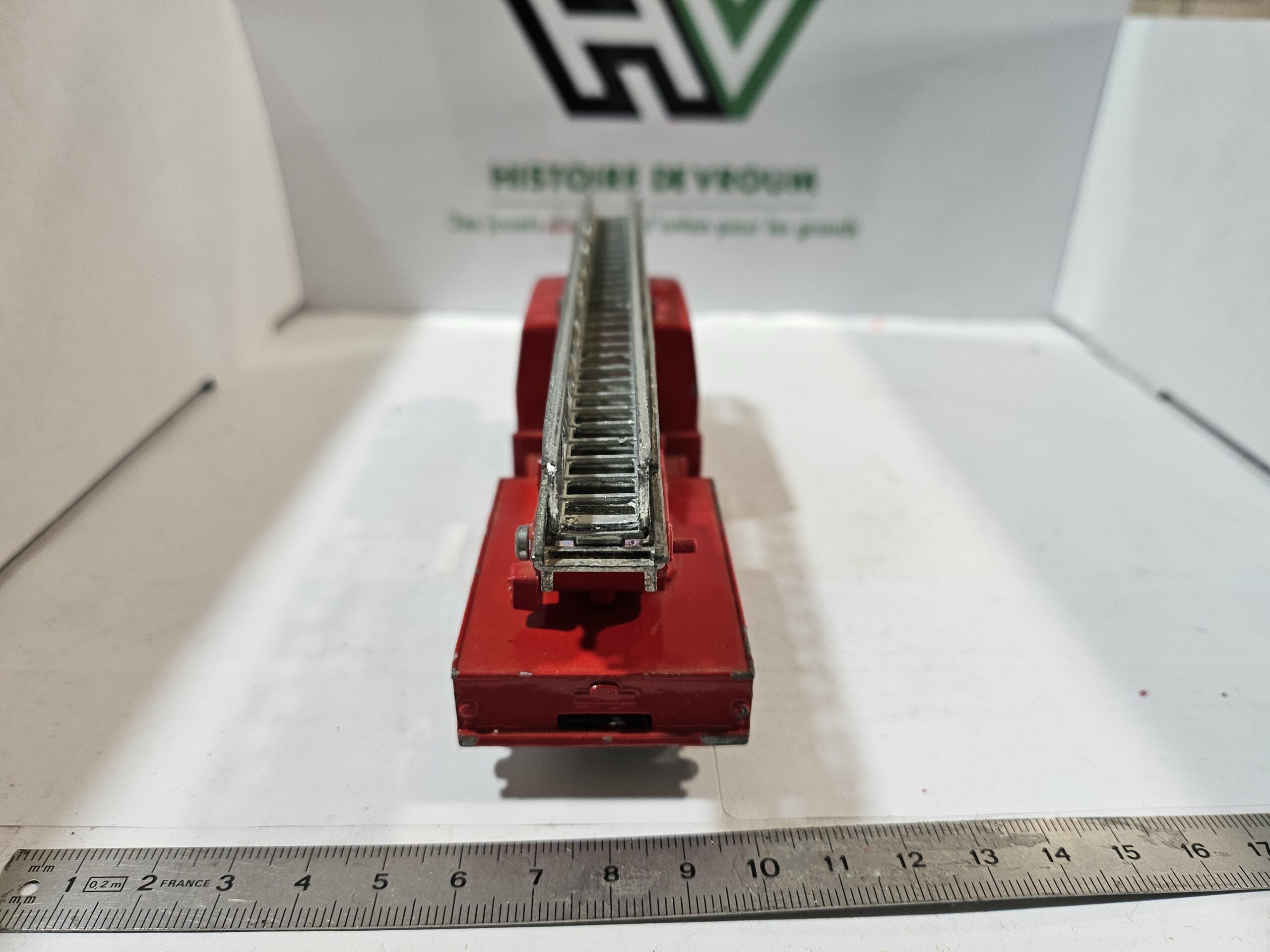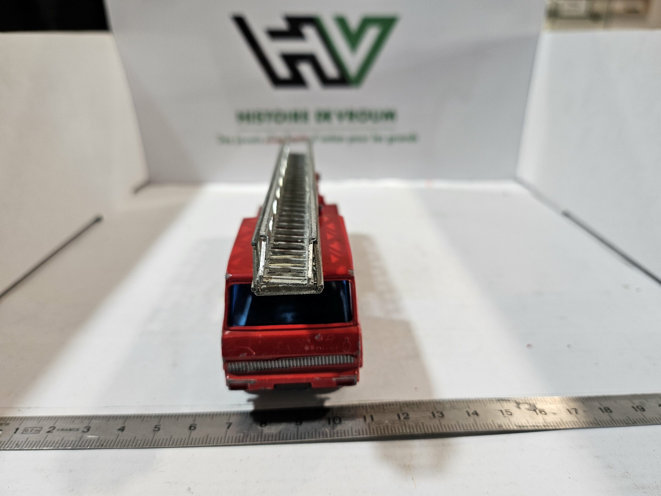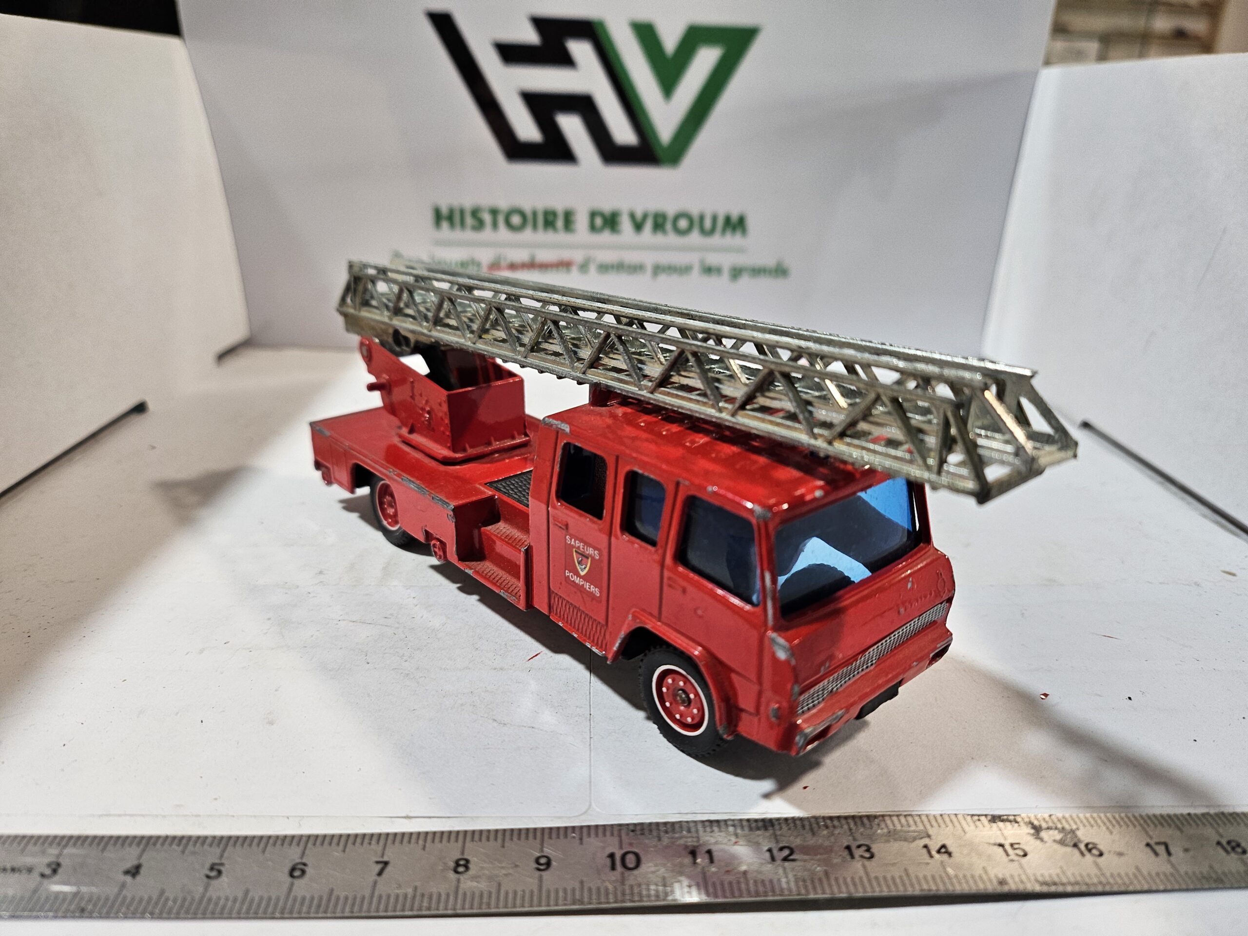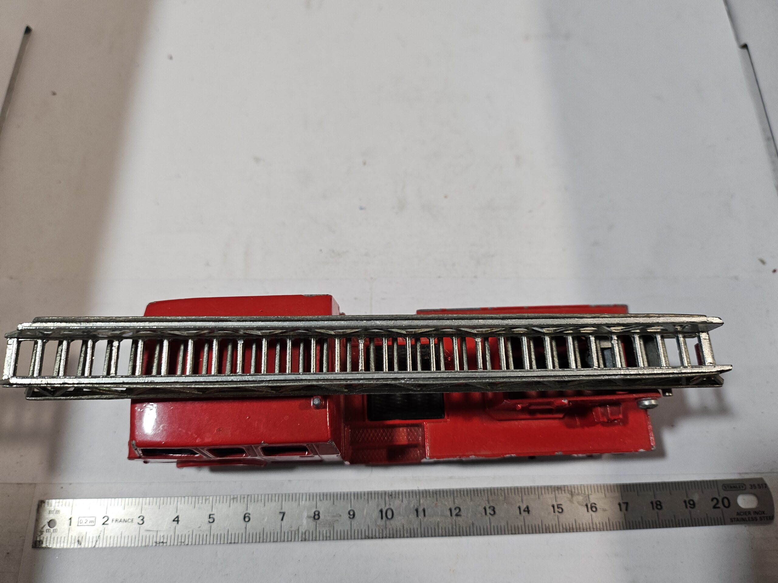Manques/Défauts : Il manque certaines pièces (précisez ici, par ex: gyrophare, morceau d’échelle ou antenne). L’échelle présente des signes de fatigue (voir photos).