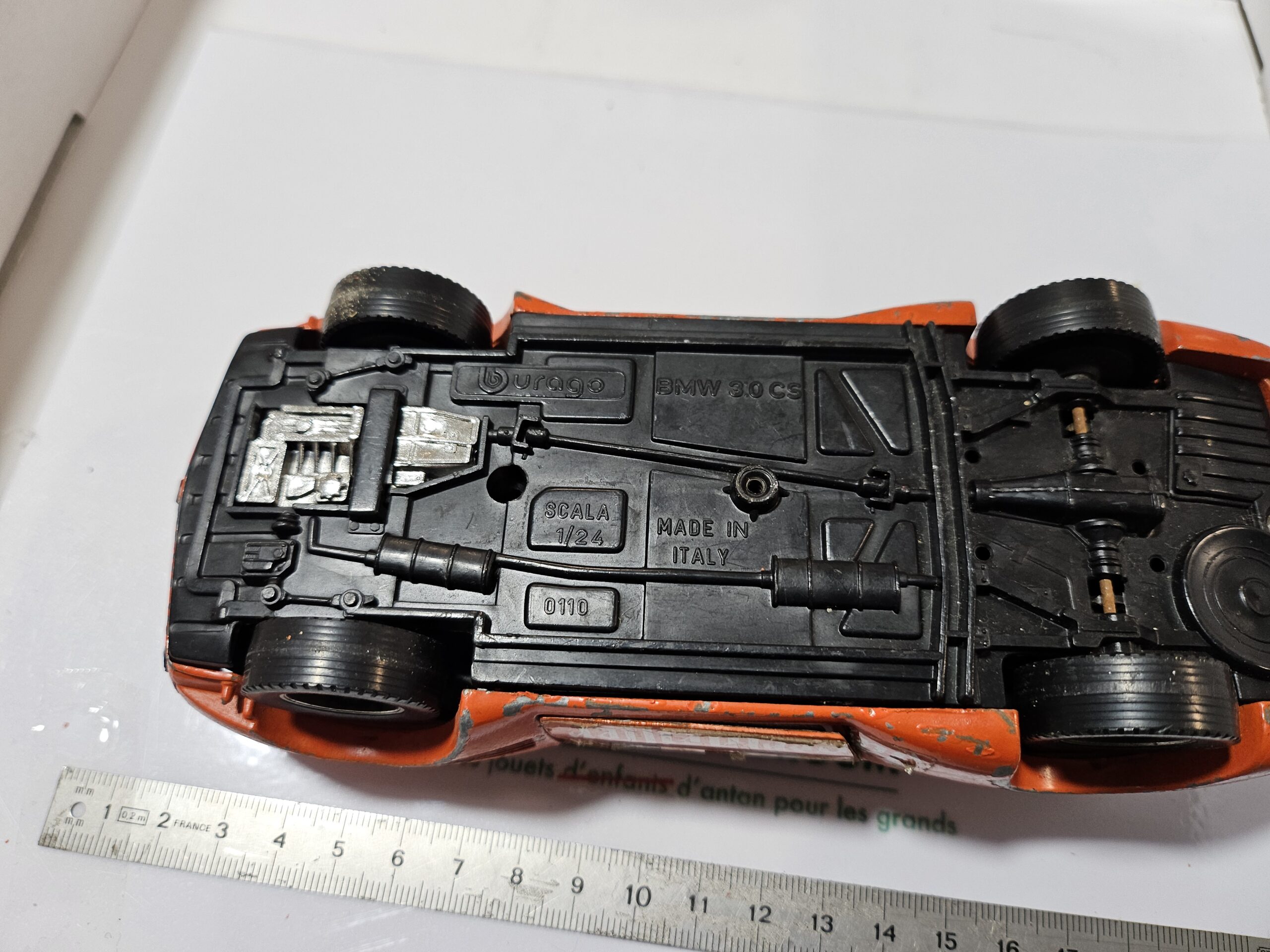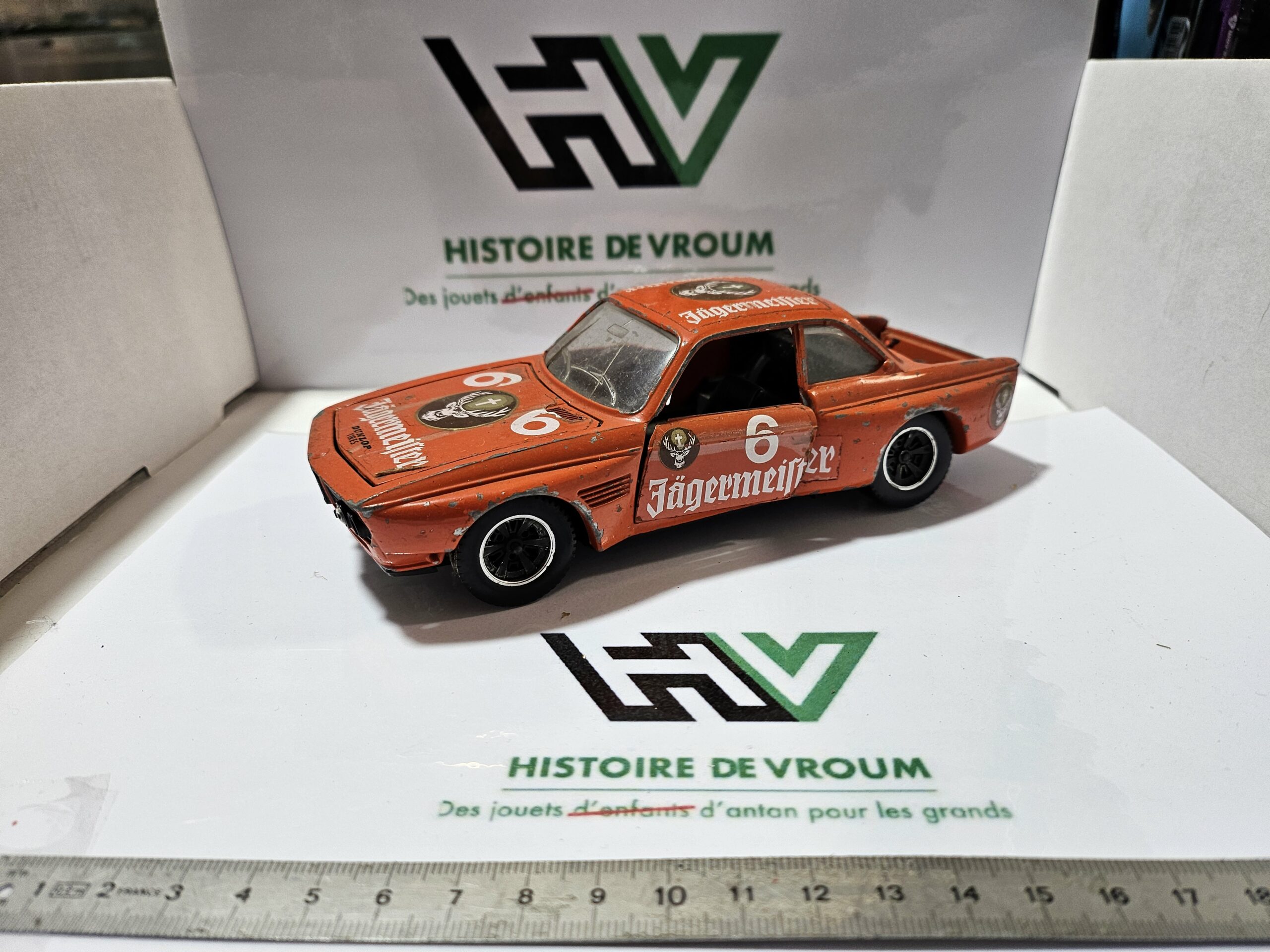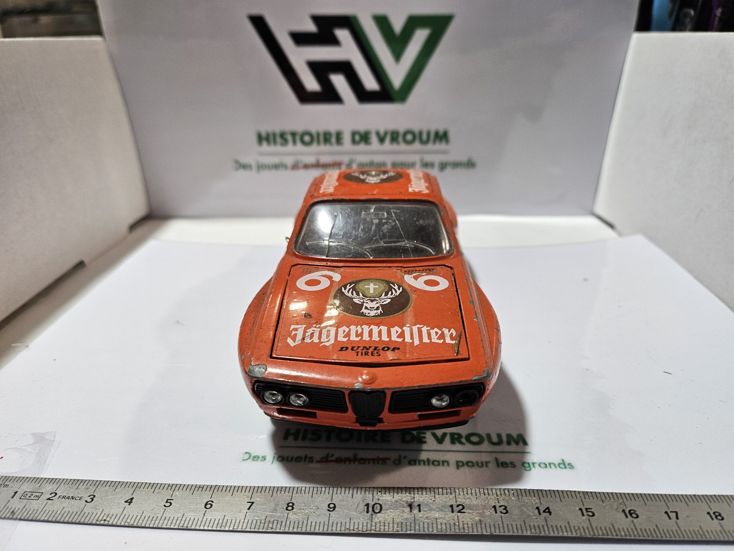 Description : Vends miniature BMW 3.0 CS/CSL à l’échelle 1/24, mythique livrée orange Jägermeister (n°6). Véritable modèle vintage Bburago, fabriqué en Italie (Réf 0110).