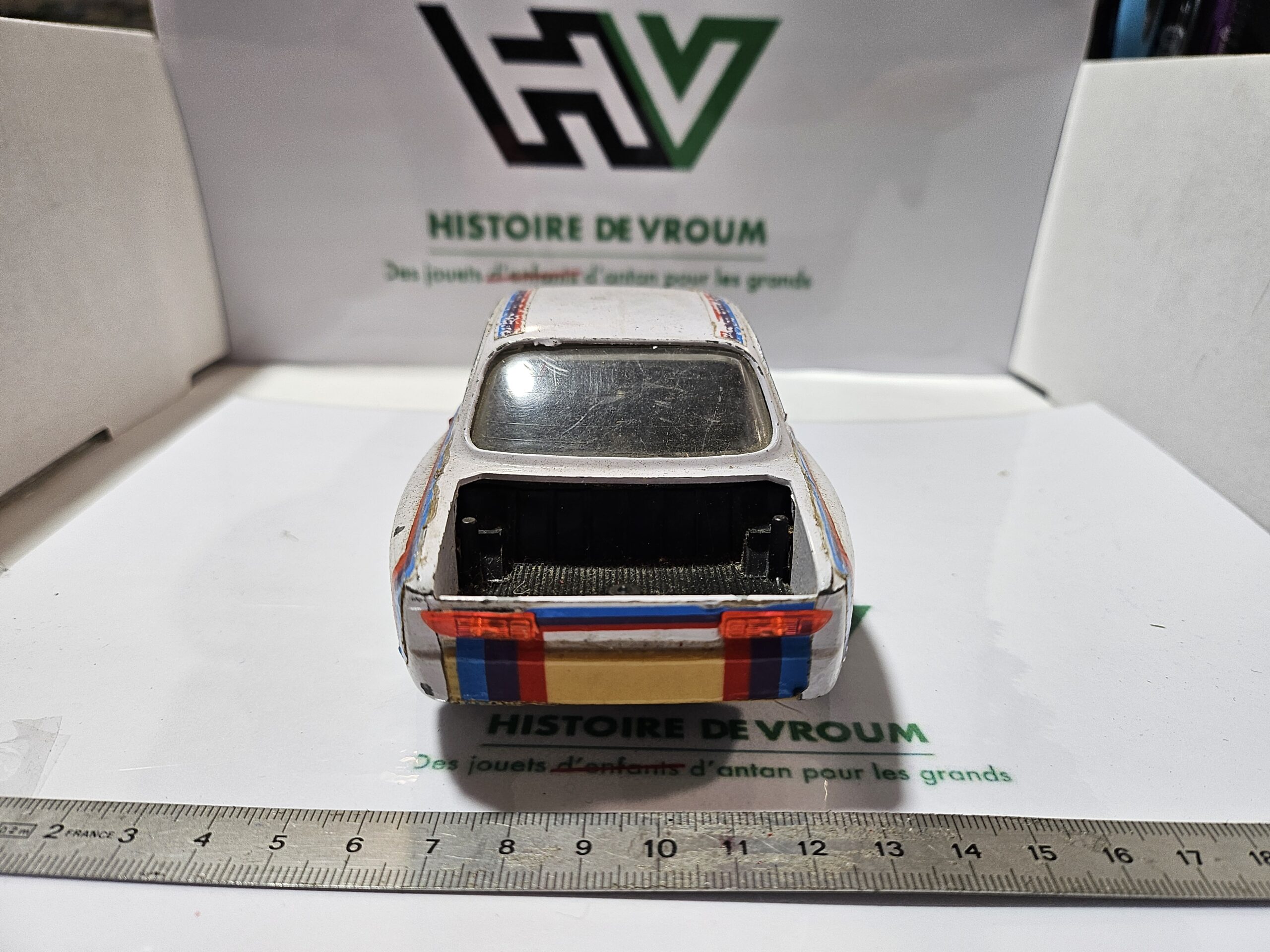 Châssis et carrosserie : En métal, bon état structurel mais peinture et stickers présentant des traces d’usure (voir photos).