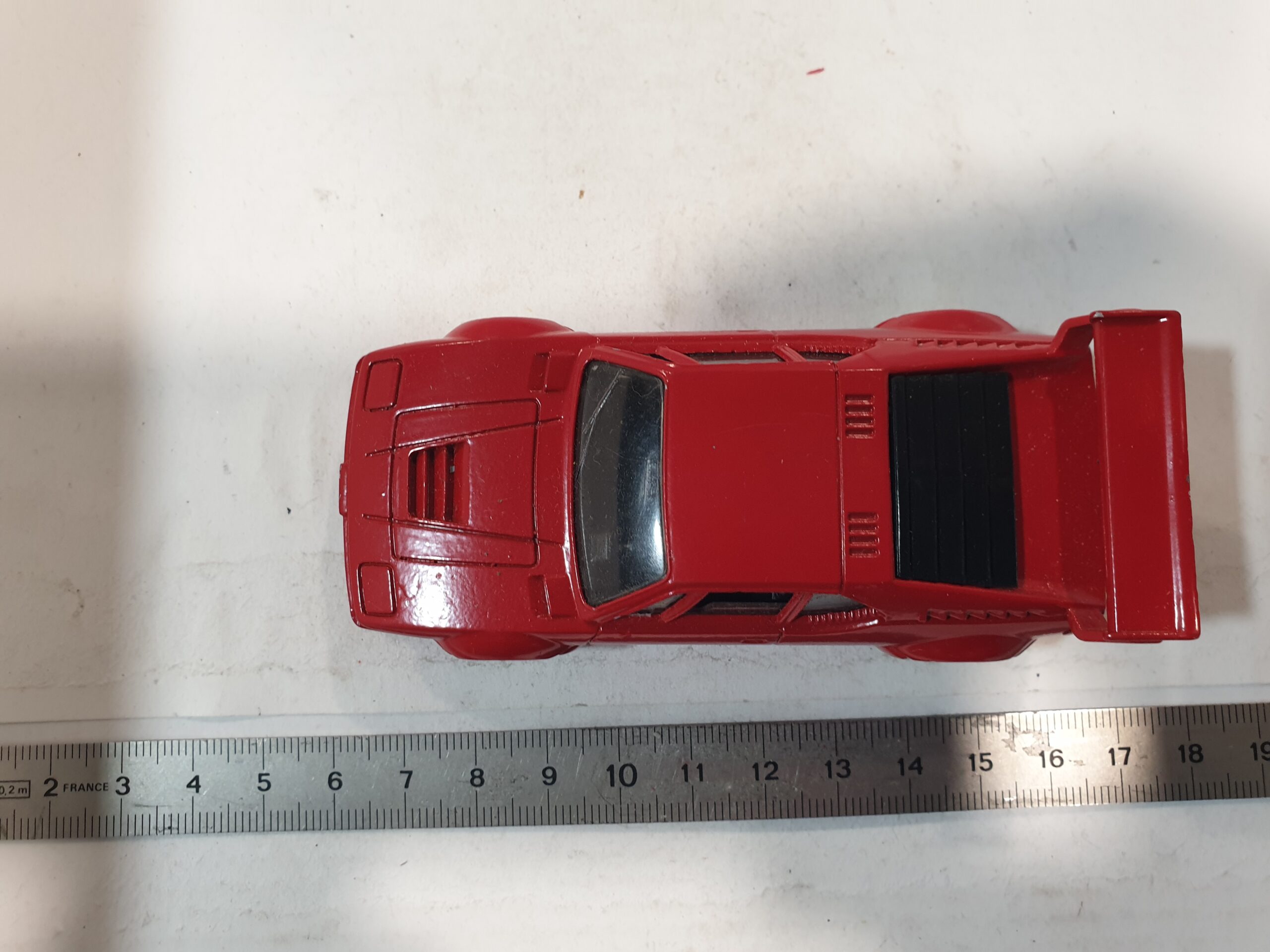 • État : Bon état, la peinture rouge est bien conservée et l’aileron est intact. Les roues et la carrosserie ne présentent pas de défauts majeurs.