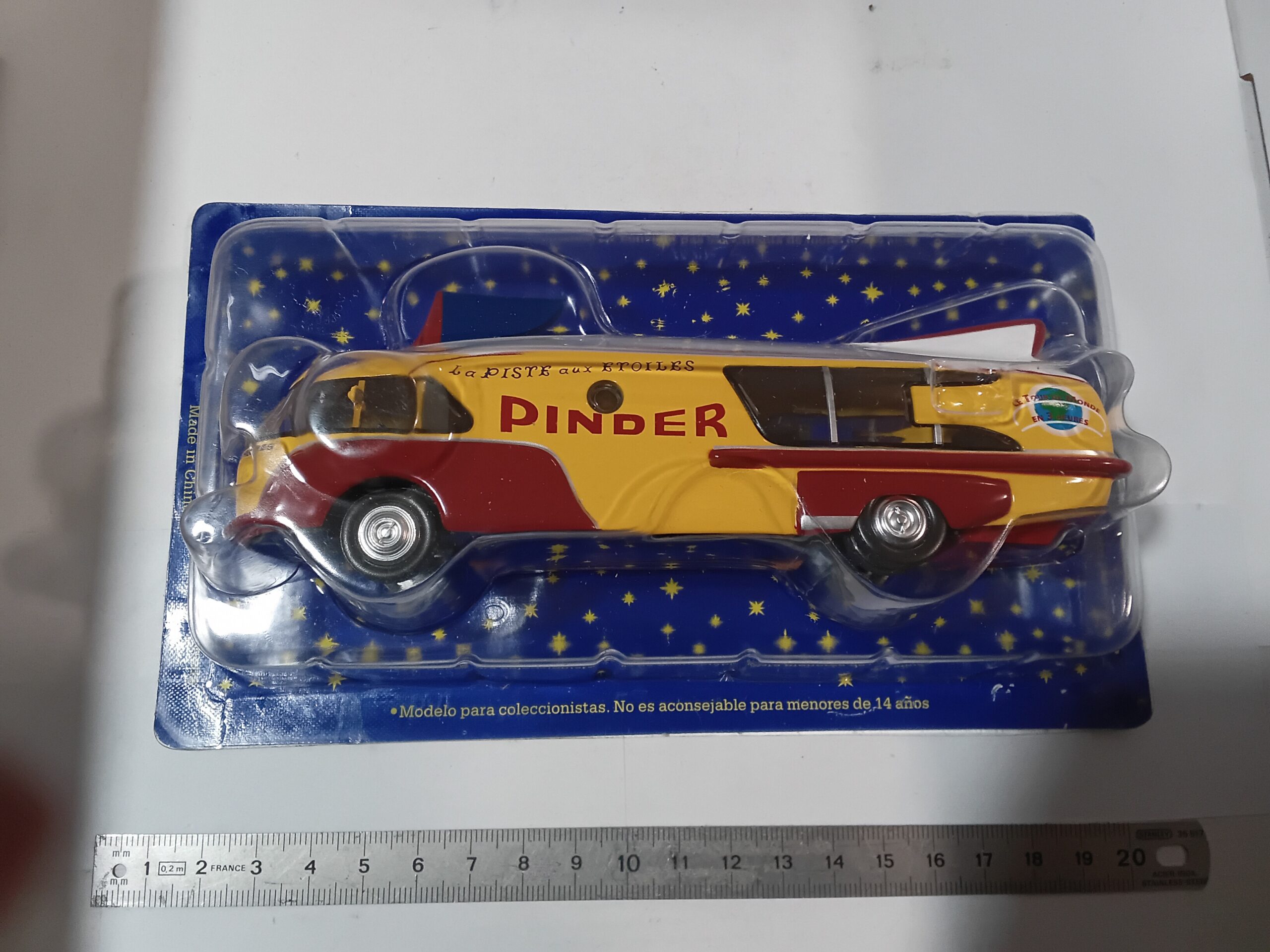 | Thème/Modèle | Bus d’accueil ou de spectacle aux couleurs de “La Piste aux Étoiles” (émission de télévision célèbre associée aux cirques) – Cirque Pinder |