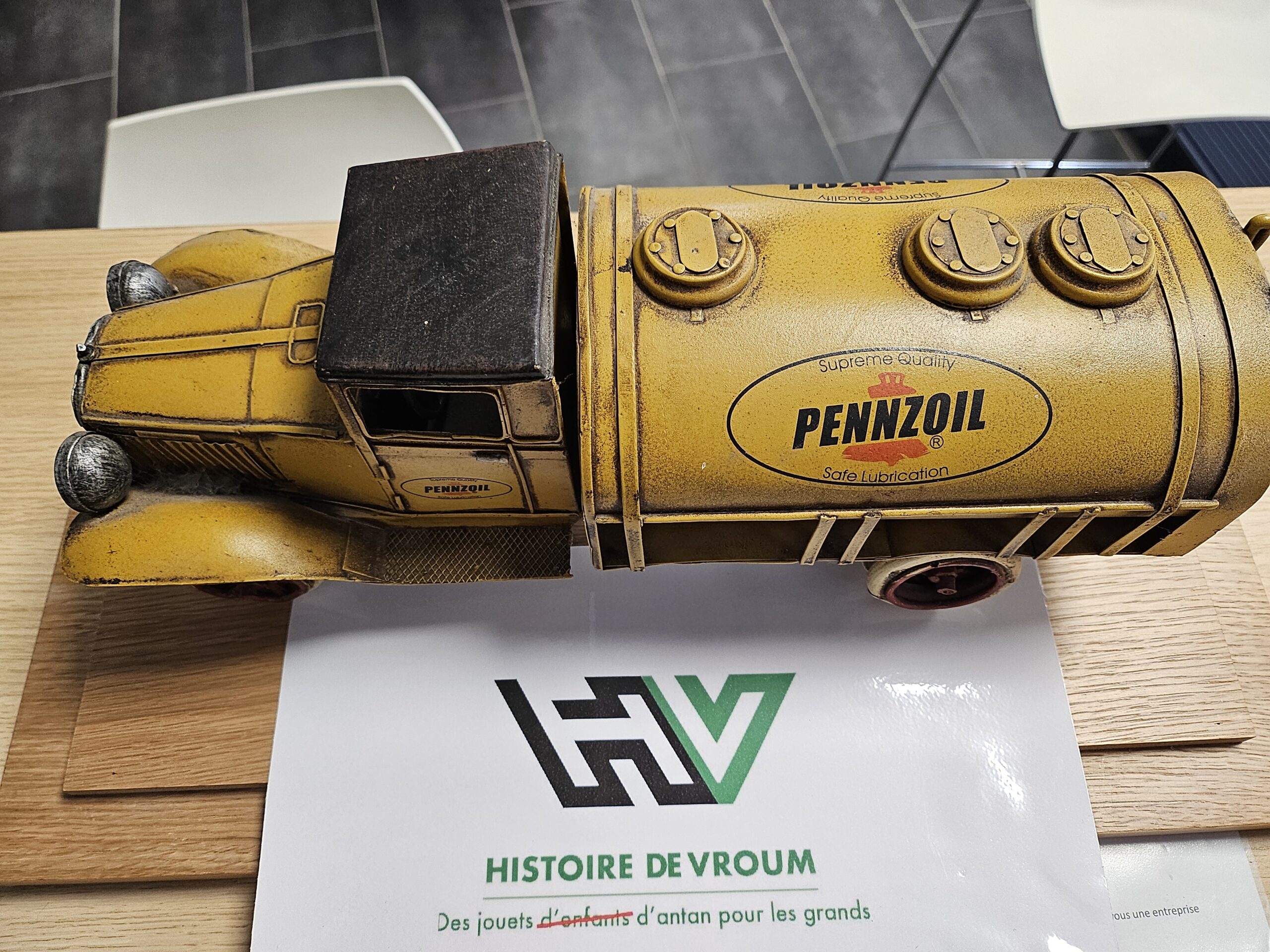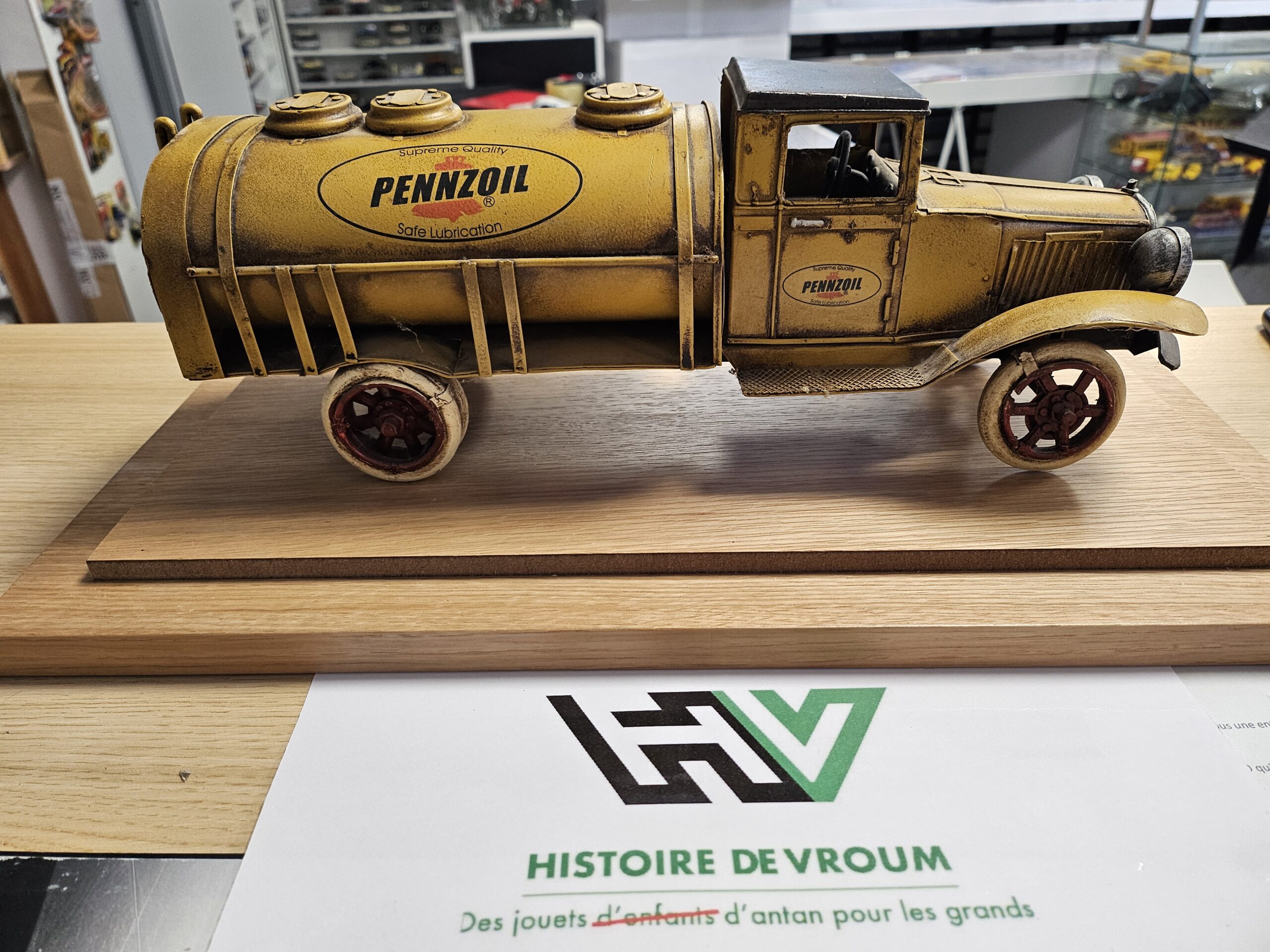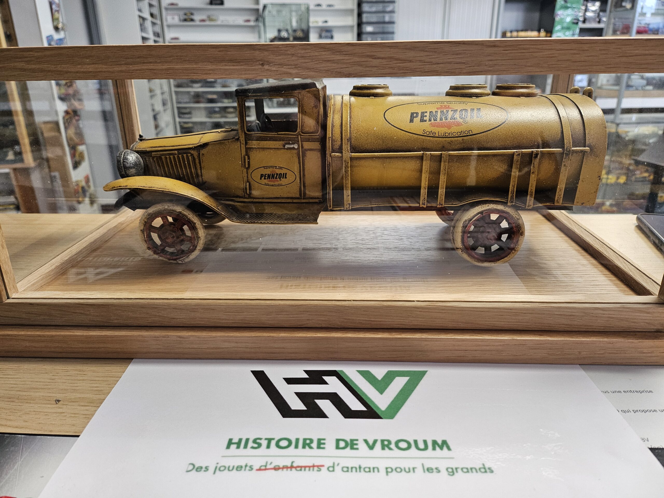 Camion Citerne de Collection Vintage PENNZOIL – 40 cm – Vitrine Chêne & Verre ( 49 € Sans vitrine )