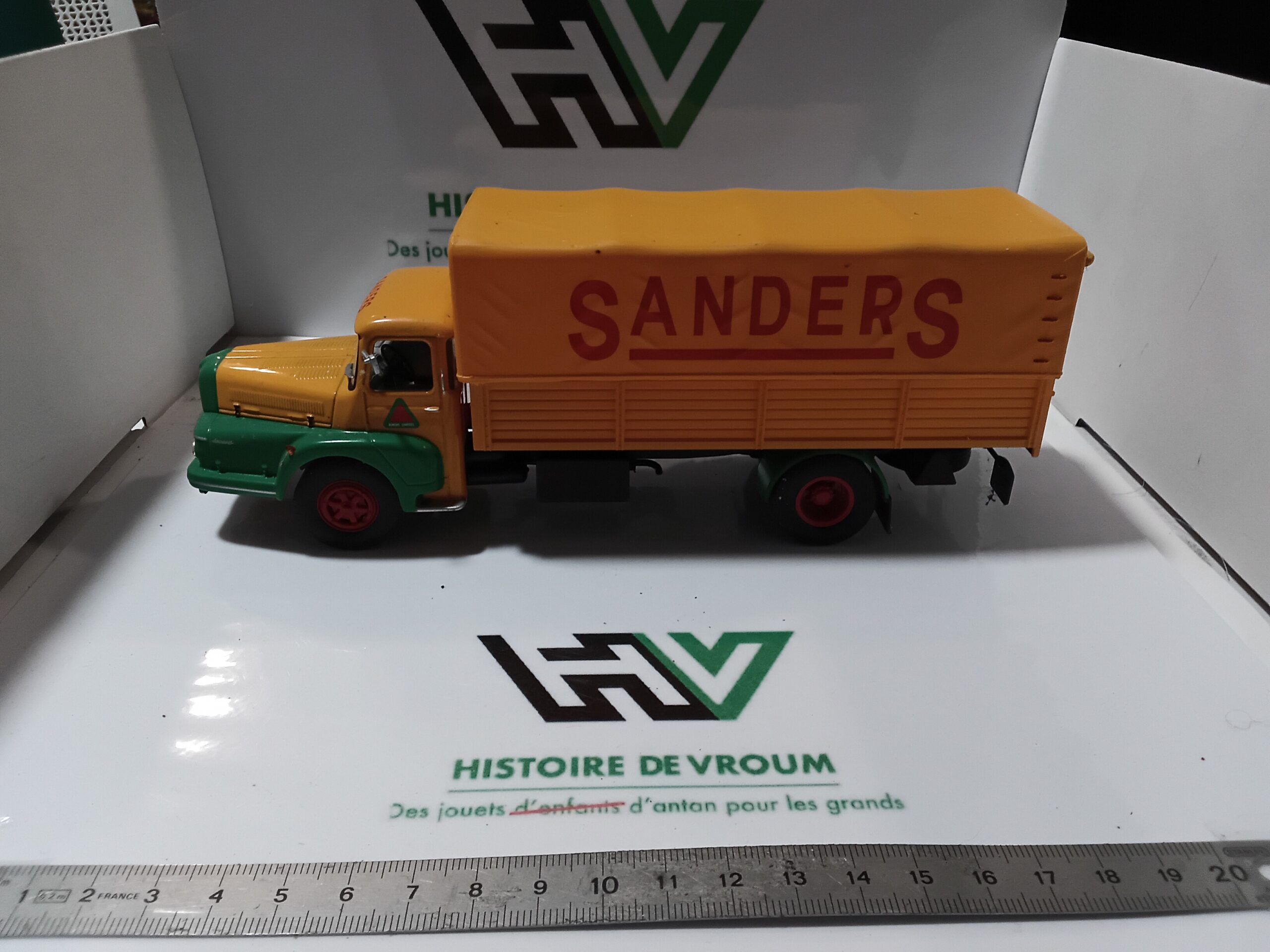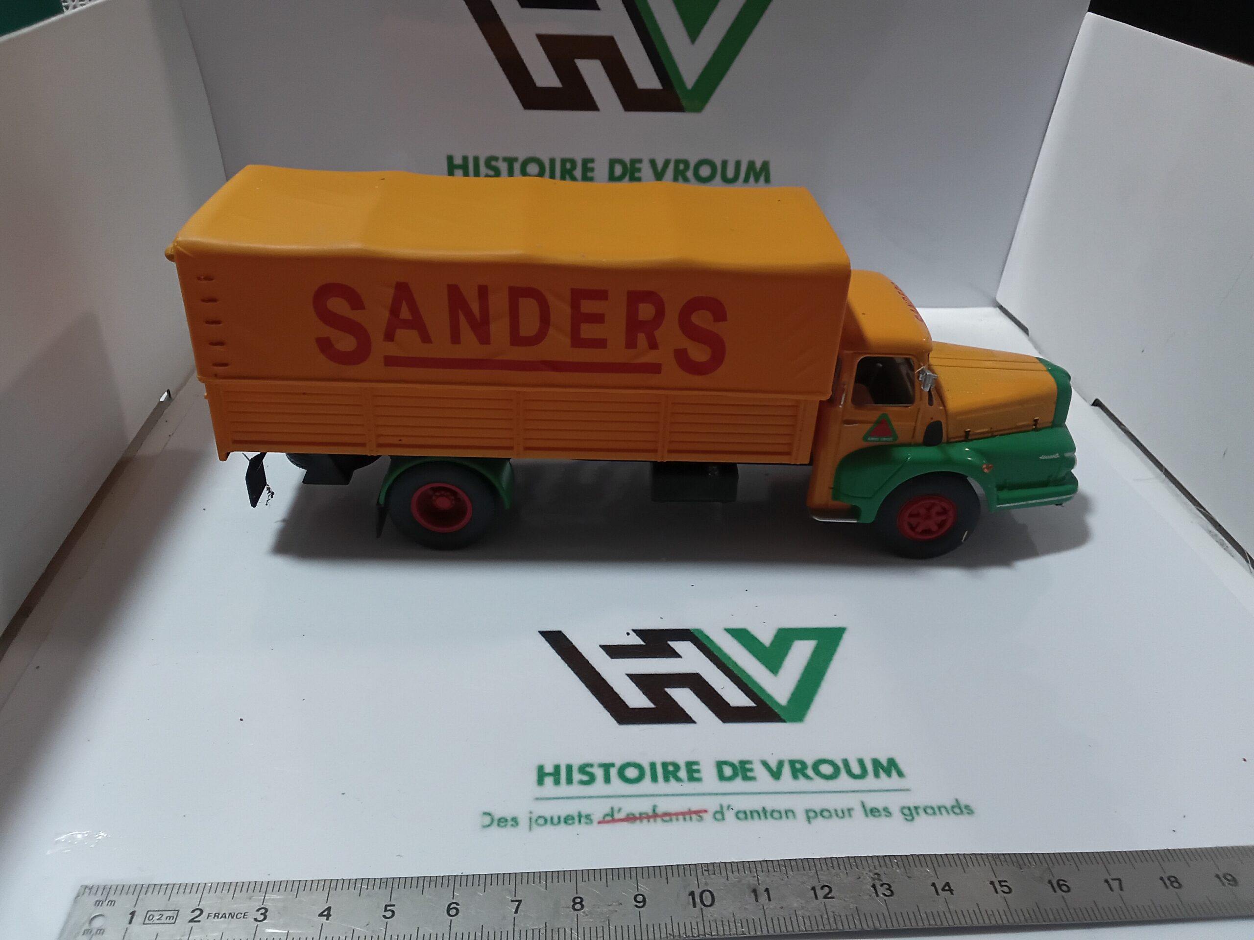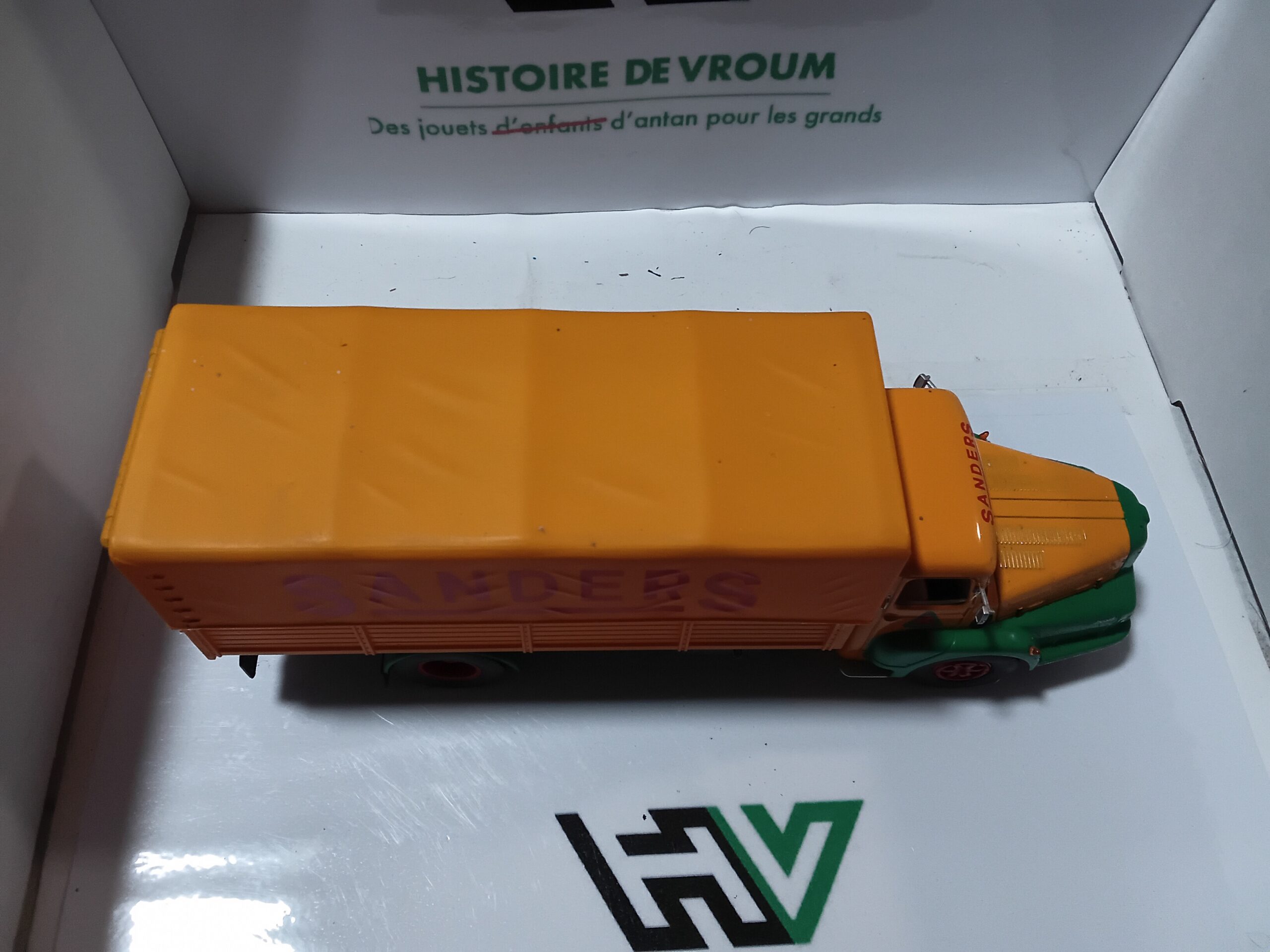 Description Superbe porteur avec sa caisse haute caractéristique des transports de sacs d’aliments. La cabine Izoard, avec son célèbre “nez” et sa calandre ornée du logo Unic, est parfaitement reproduite. La livrée Sanders est éclatante, avec des marquages publicitaires d’époque très nets. Un modèle qui fleure bon la France des années 50 et 60.