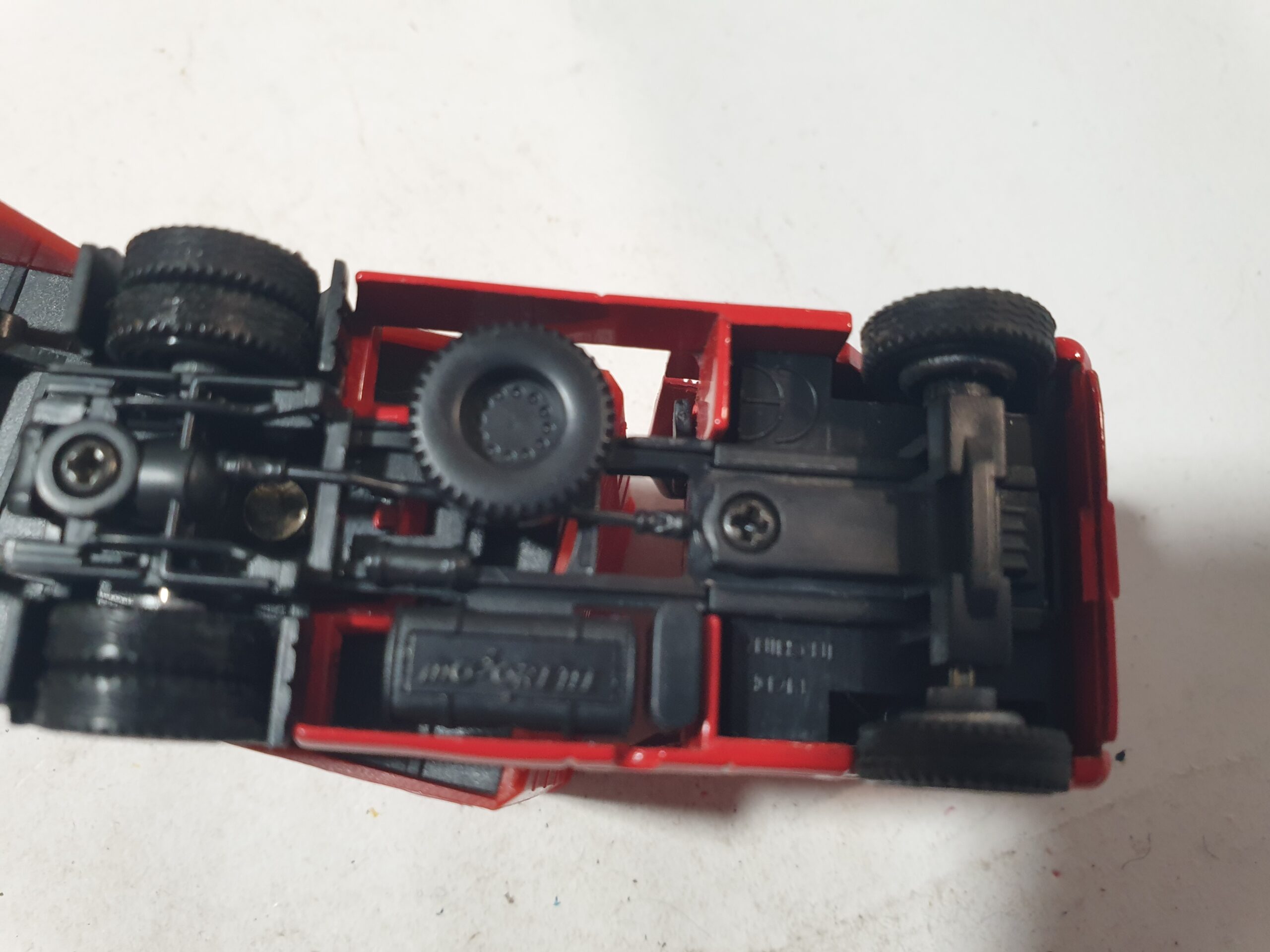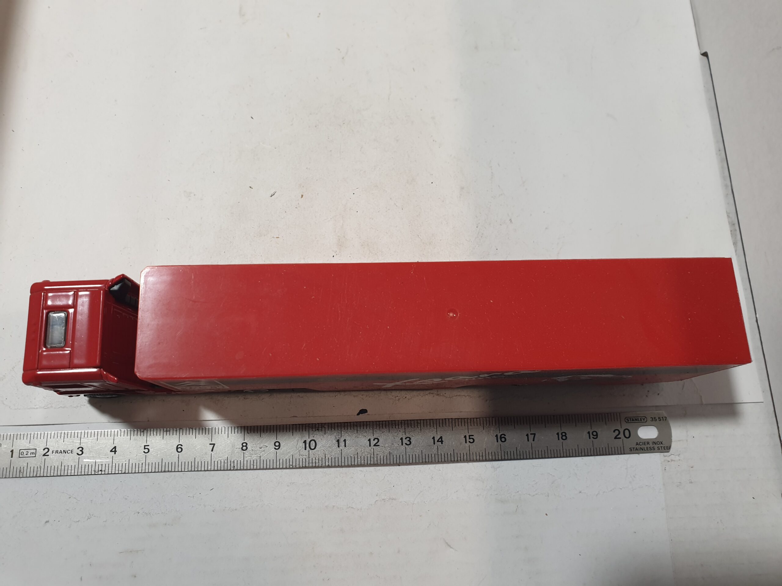 Cette miniature est dans un excellent état général, presque neuf. La peinture rouge est brillante et sans éclats majeurs. Toutes les sérigraphies et décorations sont parfaitement intactes et détaillées : logos Citroën Sport, Total, Michelin, et l’illustration de la célèbre Xsara WRC. Les roues sont toutes présentes et en parfait état. L’ensemble tracteur-remorque est solide et bien conservé.