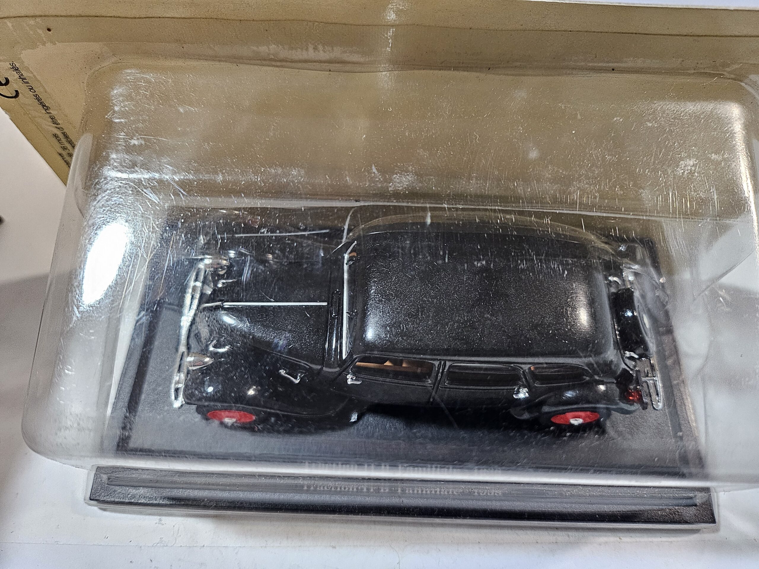 • Détails : Carrosserie noire brillante, jantes rouges typiques de l’époque, finitions en zamak et plastique.