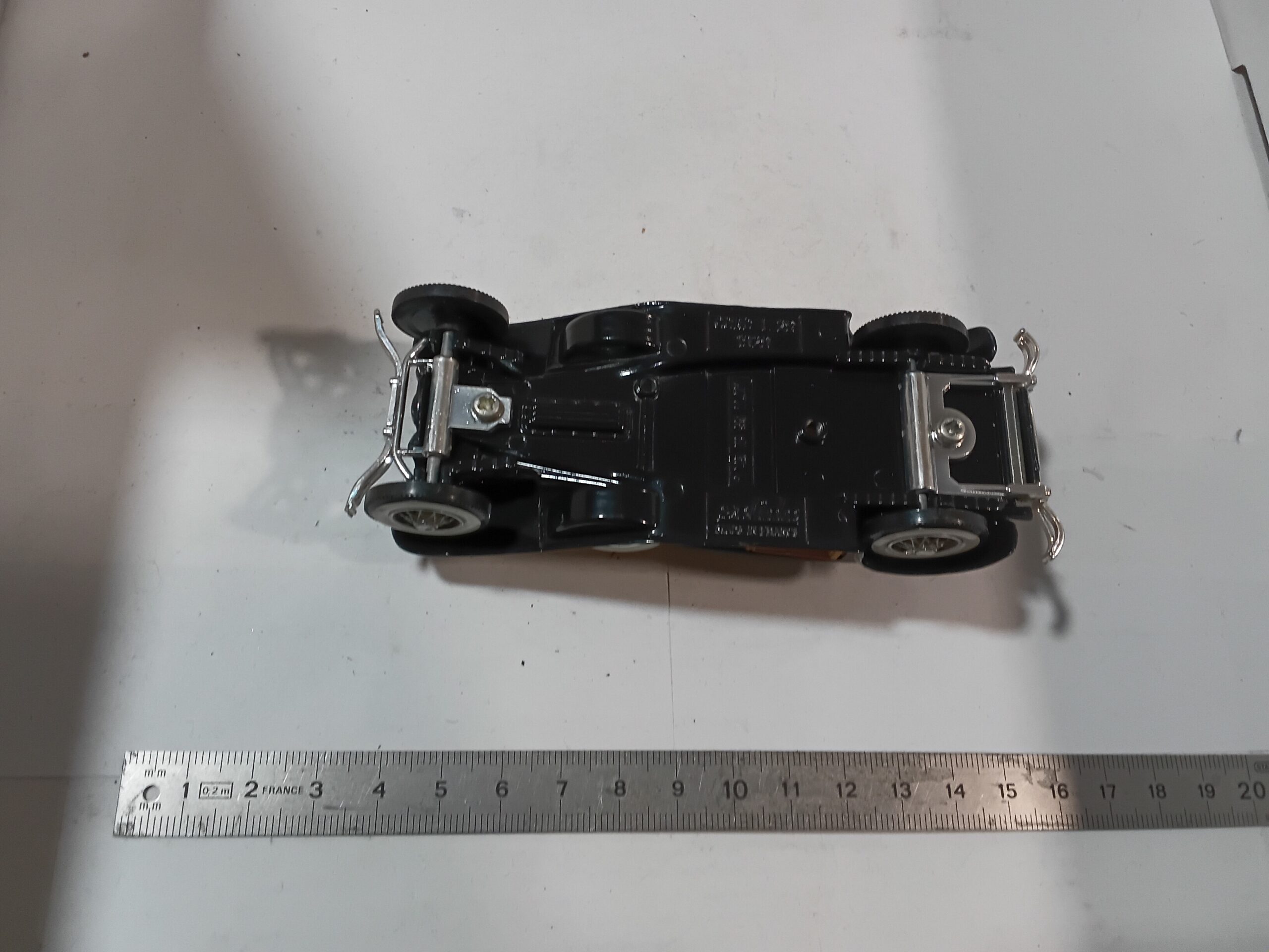 Particularités Ce modèle n°55 célèbre la ligne révolutionnaire de la Cord. On y retrouve les détails qui ont fait le succès de la série “Âge d’Or” : la calandre chromée en pointe, les feux séparés et les roues à rayons. Le contraste entre le jaune vif et les parties sombres accentue son profil surbaissé unique.
