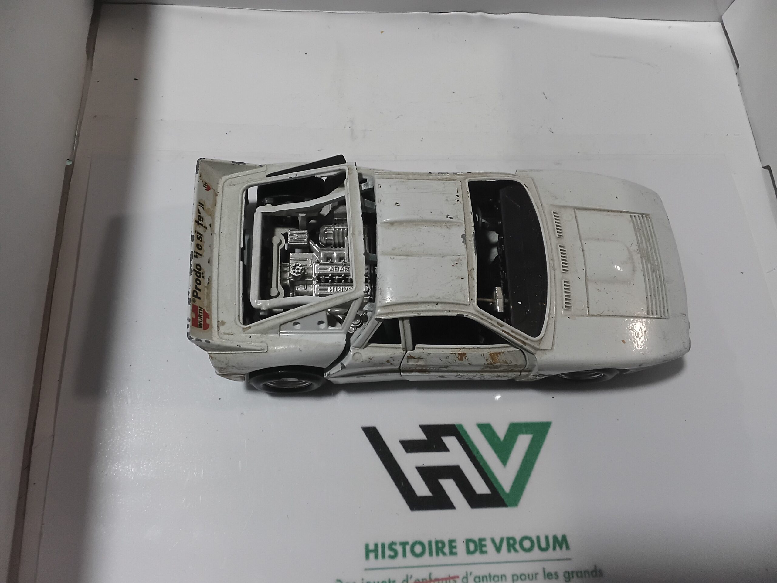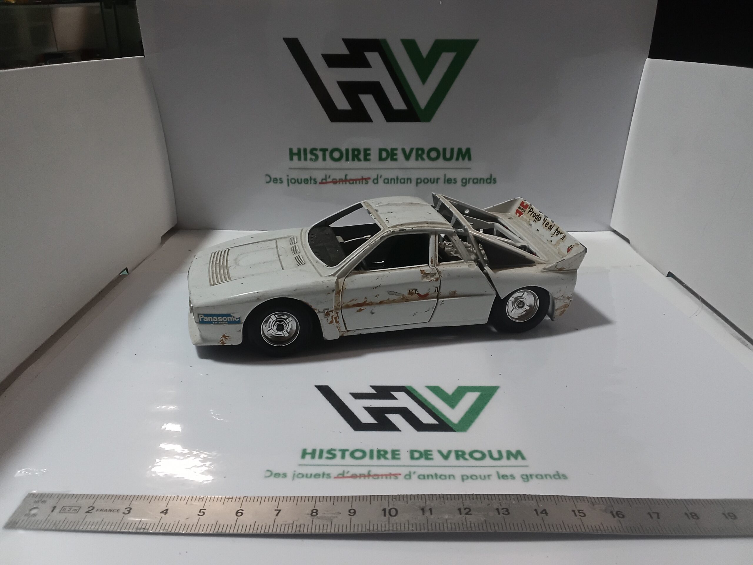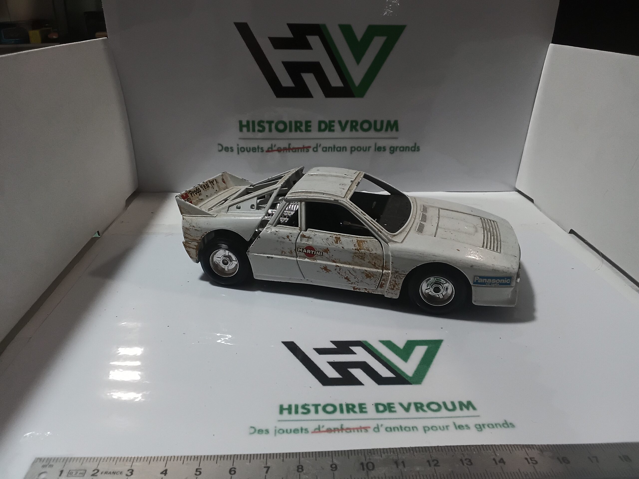 Lancia Rally 037 – Échelle 1/24 – Bburago – BLANCHE “MARTINI” – ÉPAVE – Manque pare prise, capot arrière instable