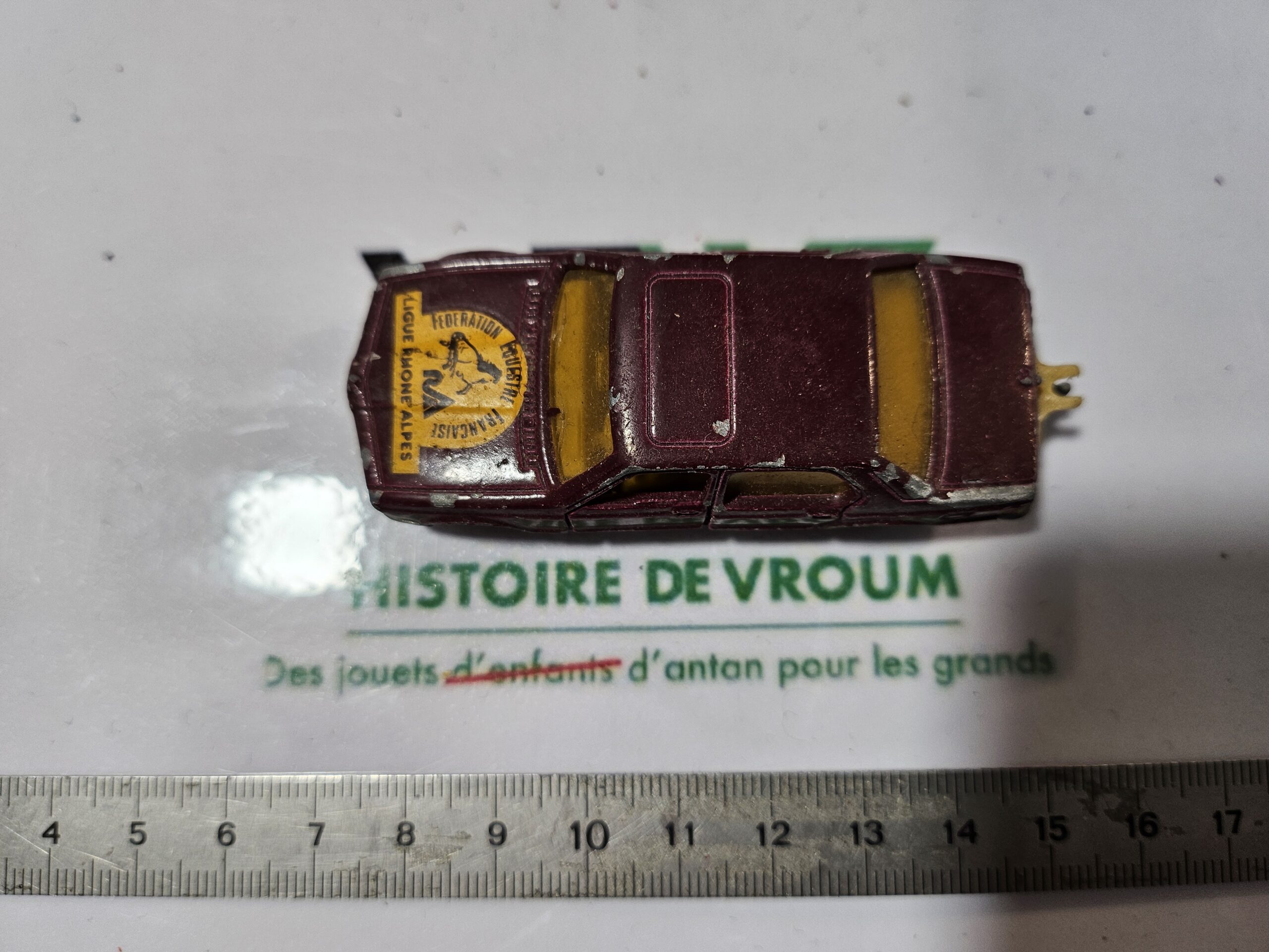 État : État d’usage (play-worn) avec manques de peinture visibles (voir photos), mais tampographie du capot bien nette.