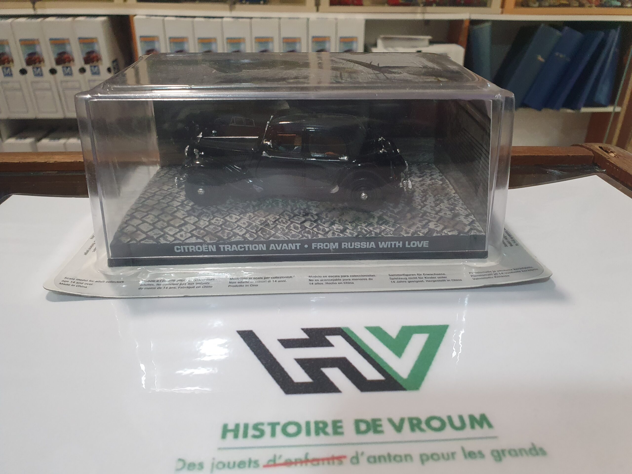À la vente, une pièce de collection complète pour les passionnés de l’univers James Bond : la mythique Citroën Traction Avant à l’échelle 1/43, fidèlement reproduite d’après le film “Bons Baisers de Russie” (From Russia With Love).