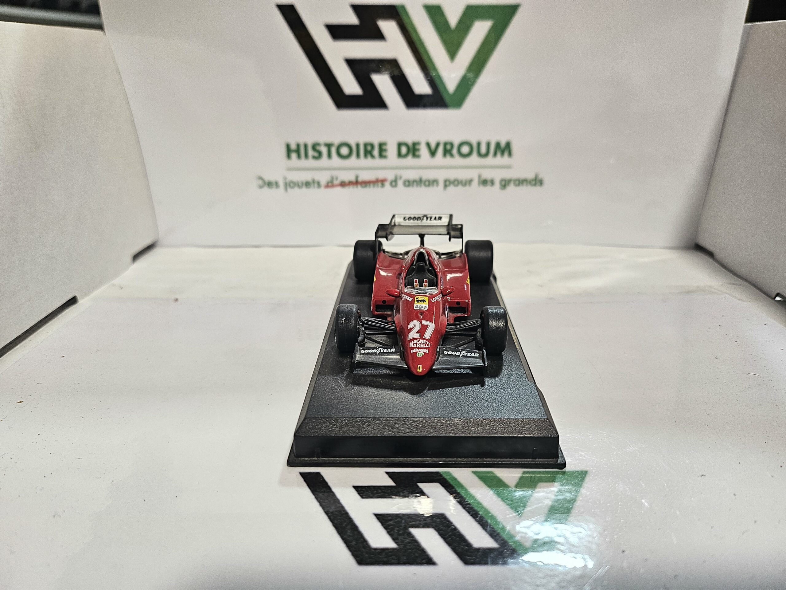Un modèle historique pour tout fan de la Scuderia Ferrari, représentant l’époque des moteurs V6 Turbo et le mythique numéro 27.