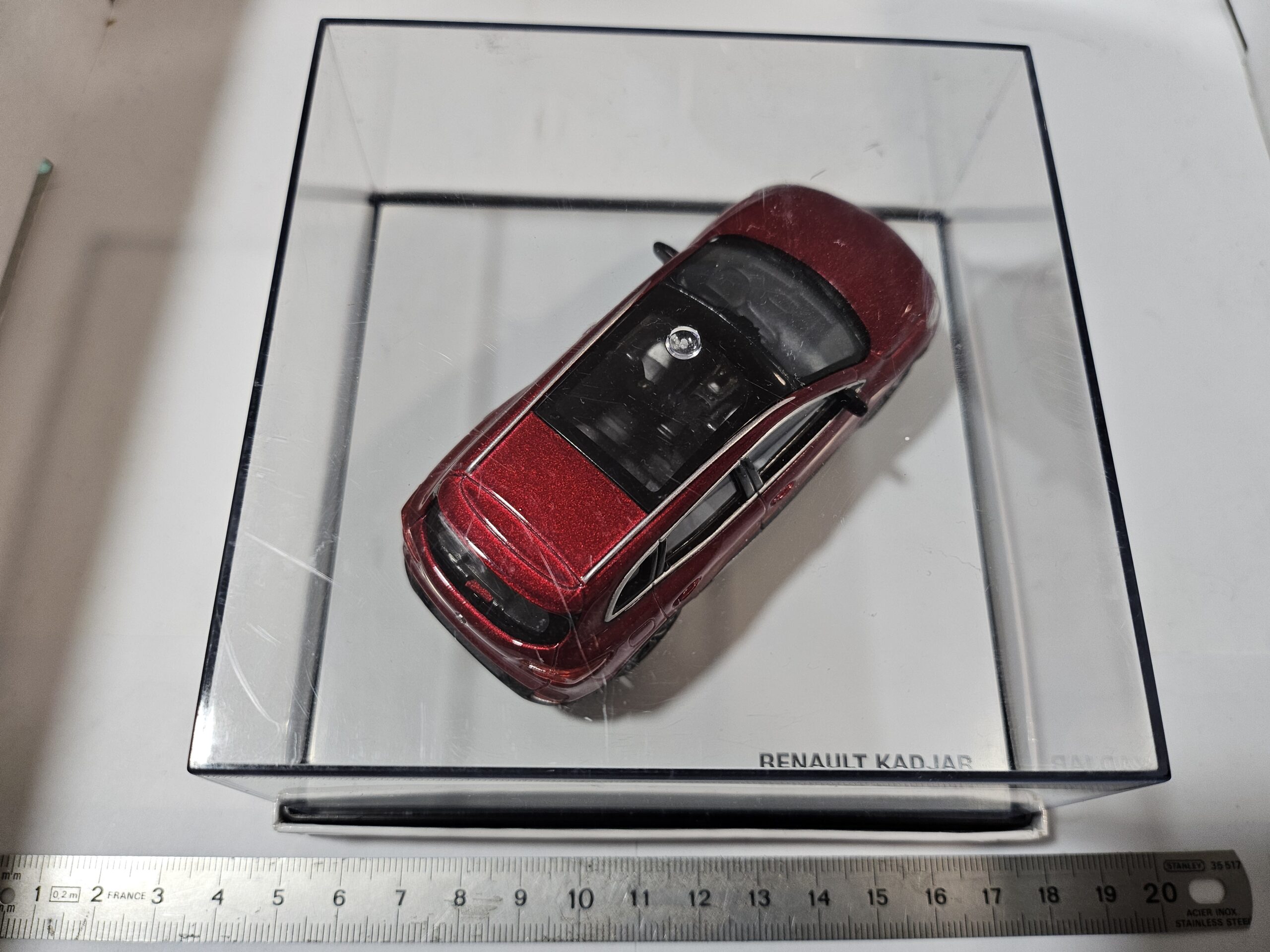 • Boîte : Boîte vitrine en excellent état. L’étiquette Renault Kadjar sur le socle est parfaitement lisible.