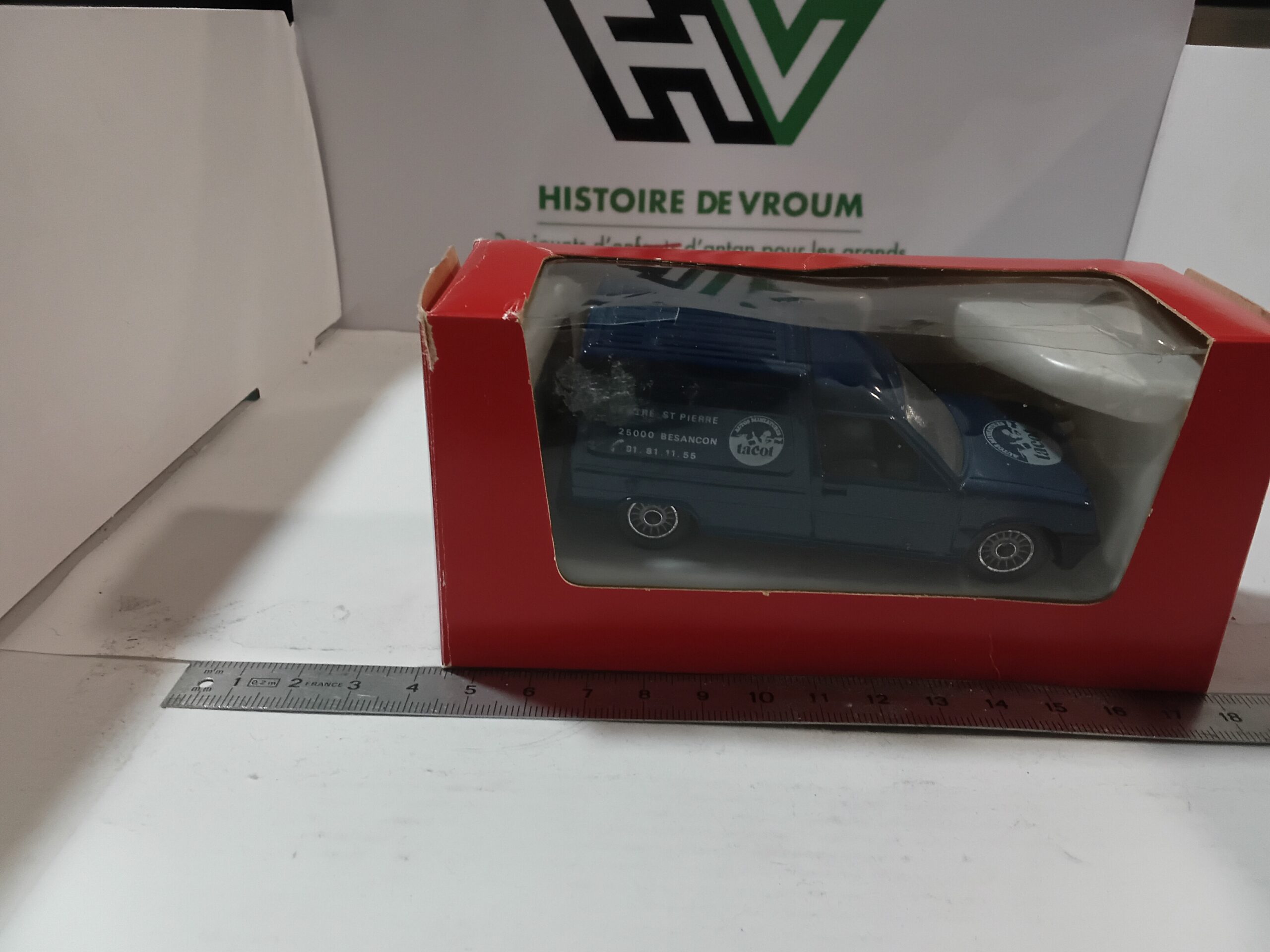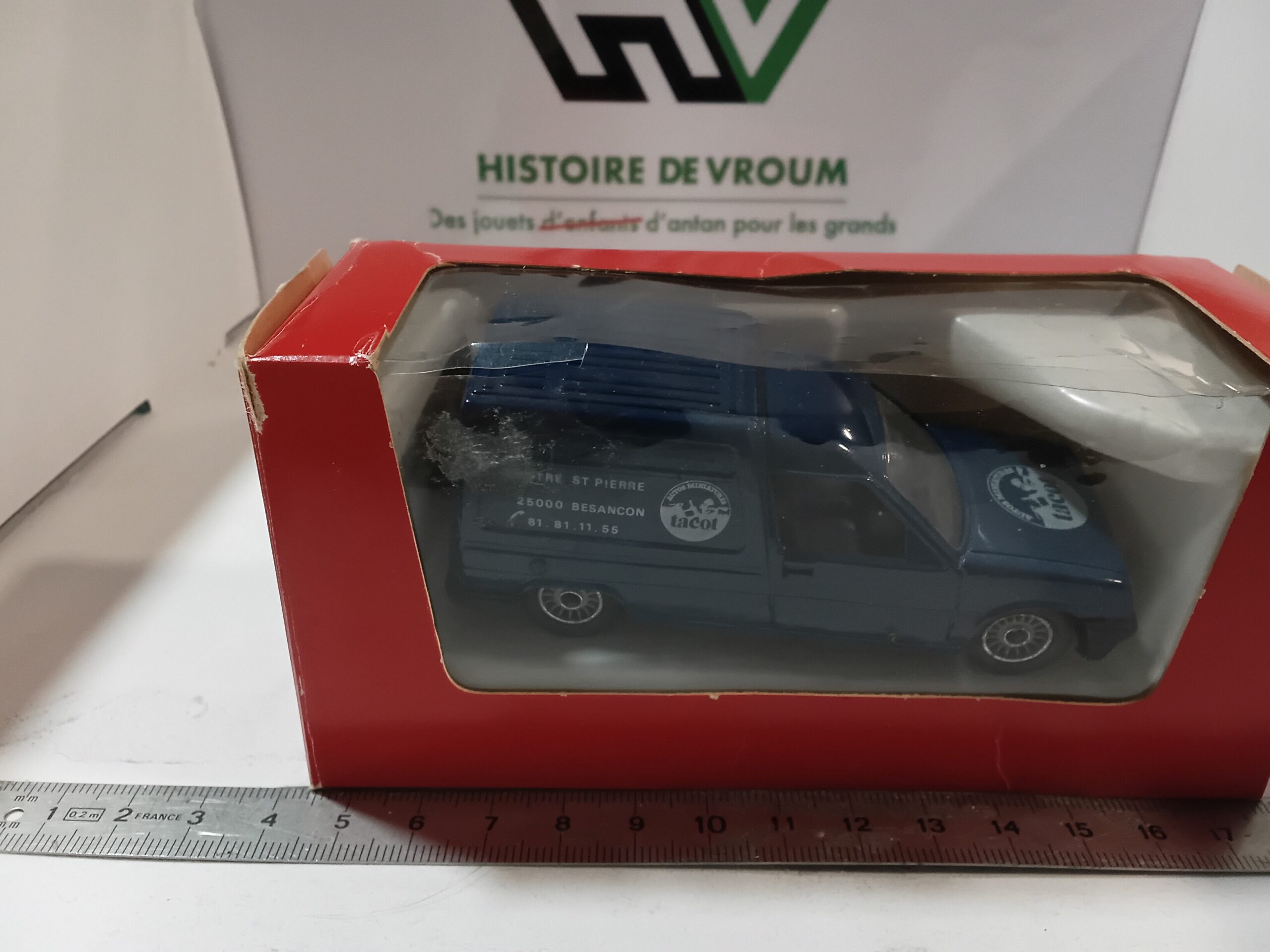 - Décoration : Publicitaire TACOT Miniatures (Mentionne Centre St Pierre 25000 Besançon). Édition spéciale “Solido Pub” pour le magasin.