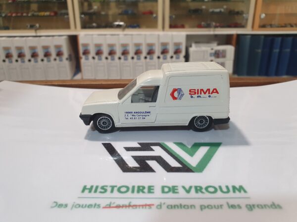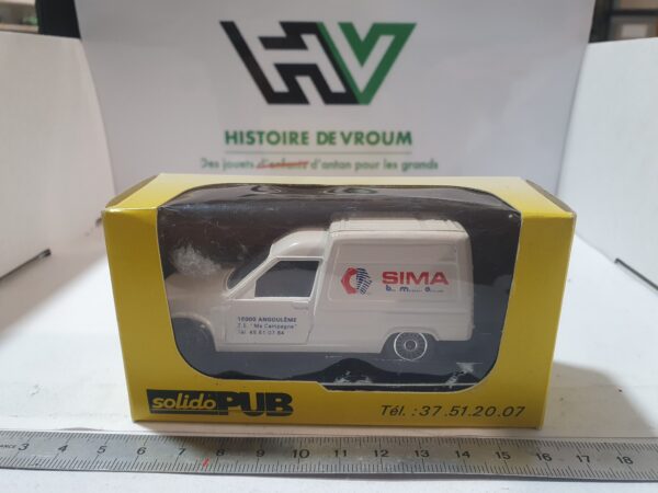 Ce modèle présente la décoration de la société SIMA (Société Industrielle et Maintenance d’Angoulême), avec les coordonnées sur la porte. C’est un bel ajout pour toute collection de véhicules publicitaires ou de modèles Solido.