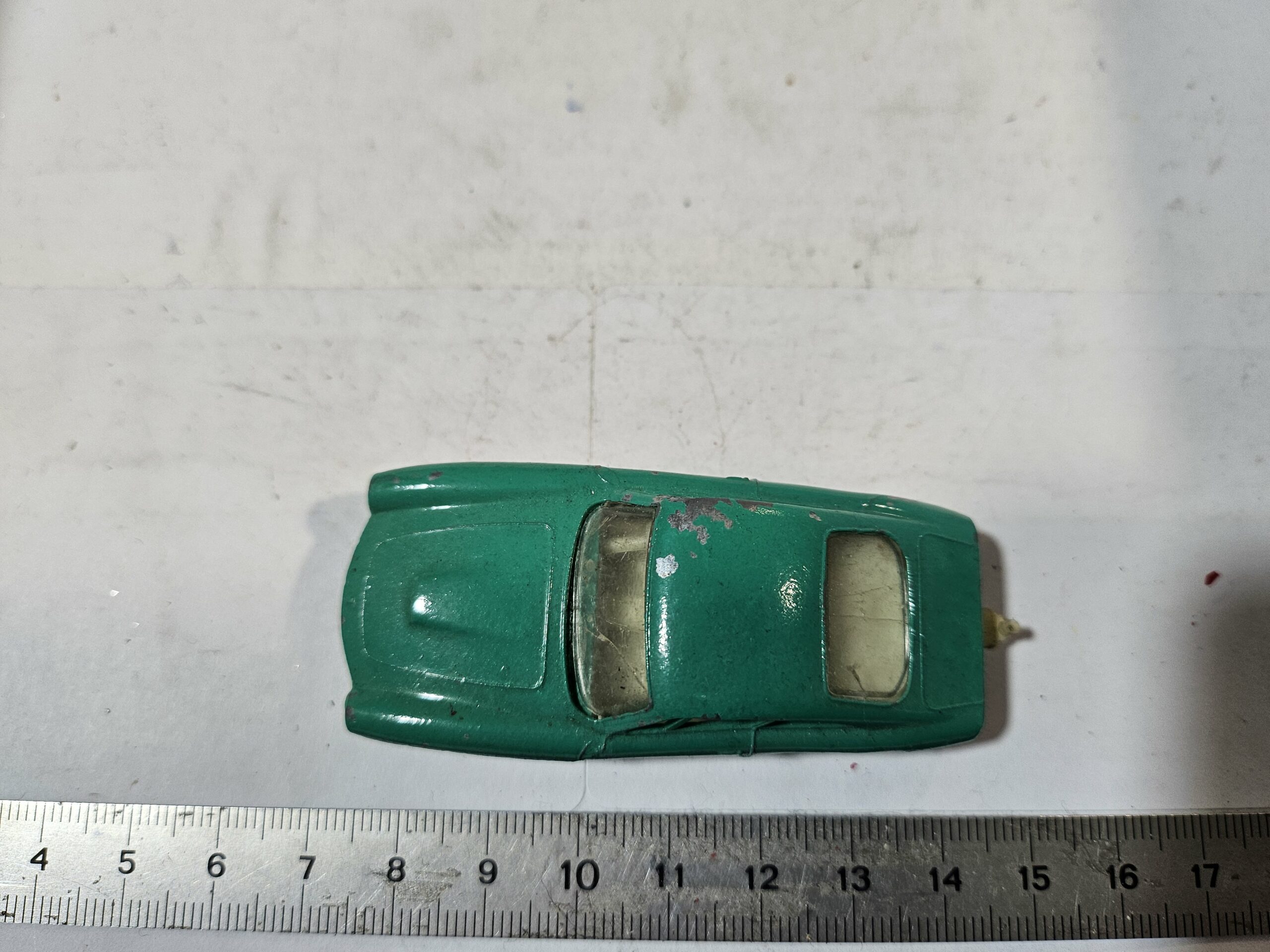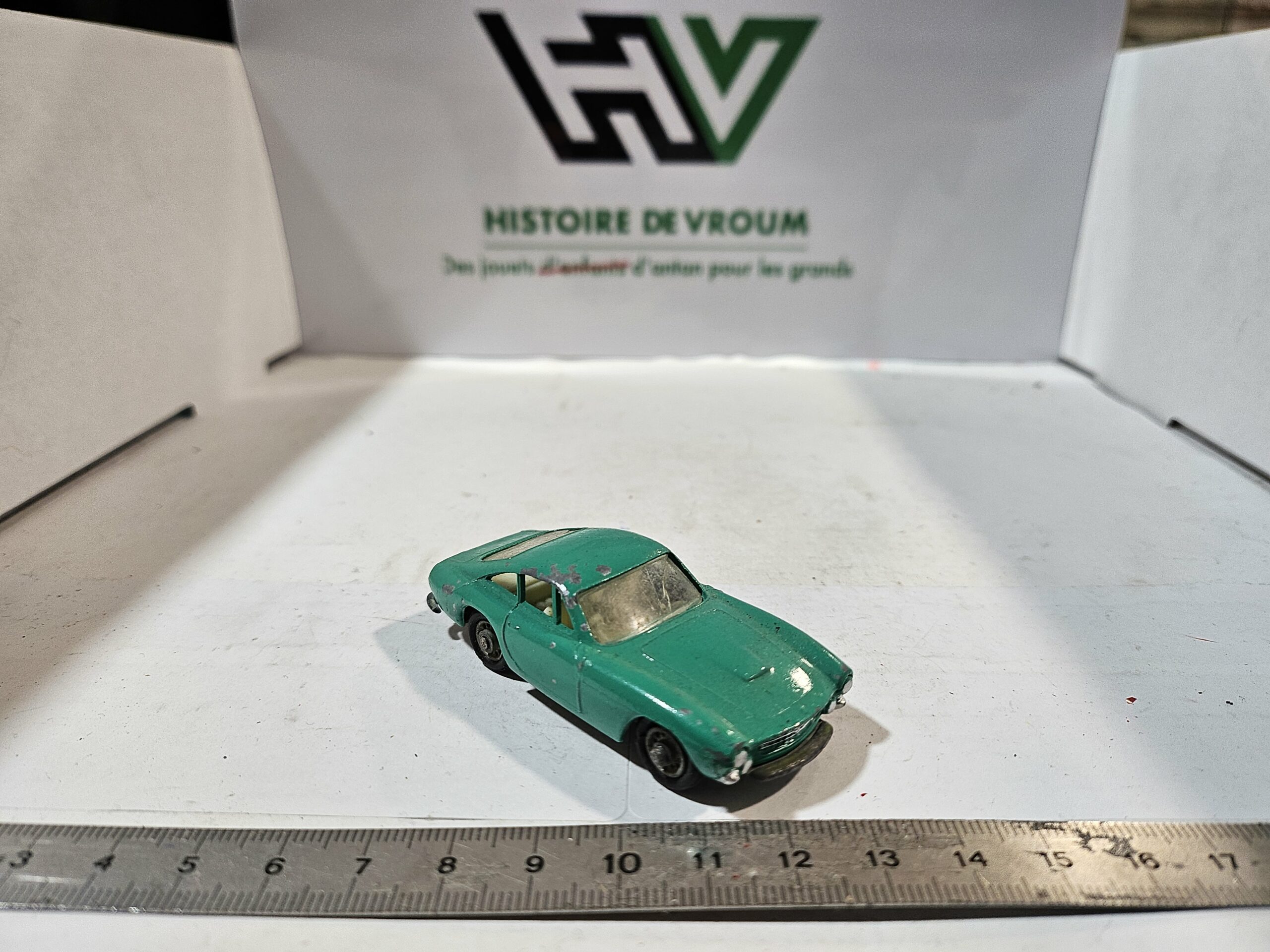 À l’époque chez Lesney, les bains de peinture pouvaient varier d’un lot à l’autre, ou certains modèles de fin de série (avant le passage aux roues Superfast) recevaient des teintes légèrement différentes. Une version “vert uni” est souvent très recherchée par les collectionneurs de variantes de moules.