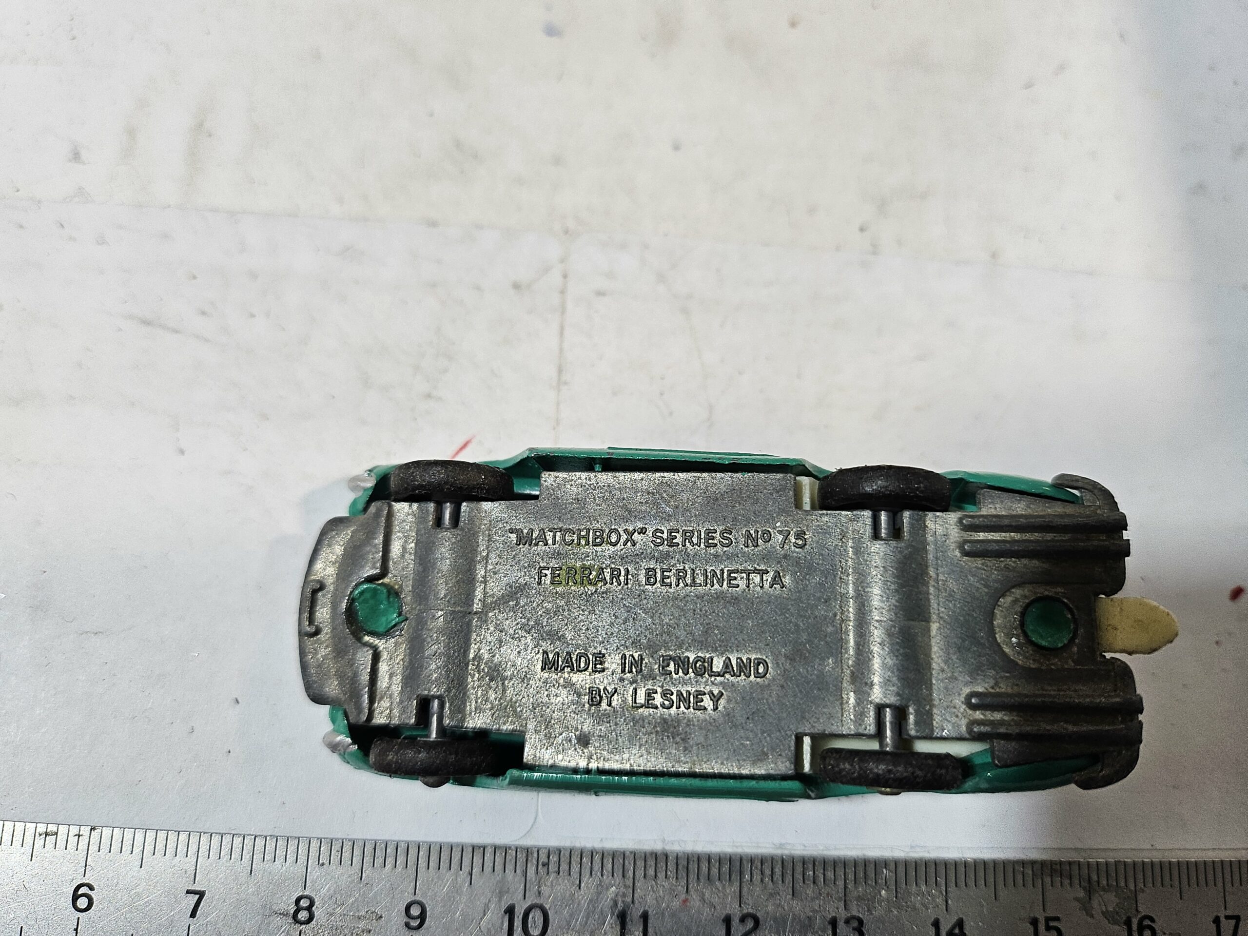Rare Matchbox No. 75 Ferrari Berlinetta – Vert Uni (Non-Métal) – Variante Lesney