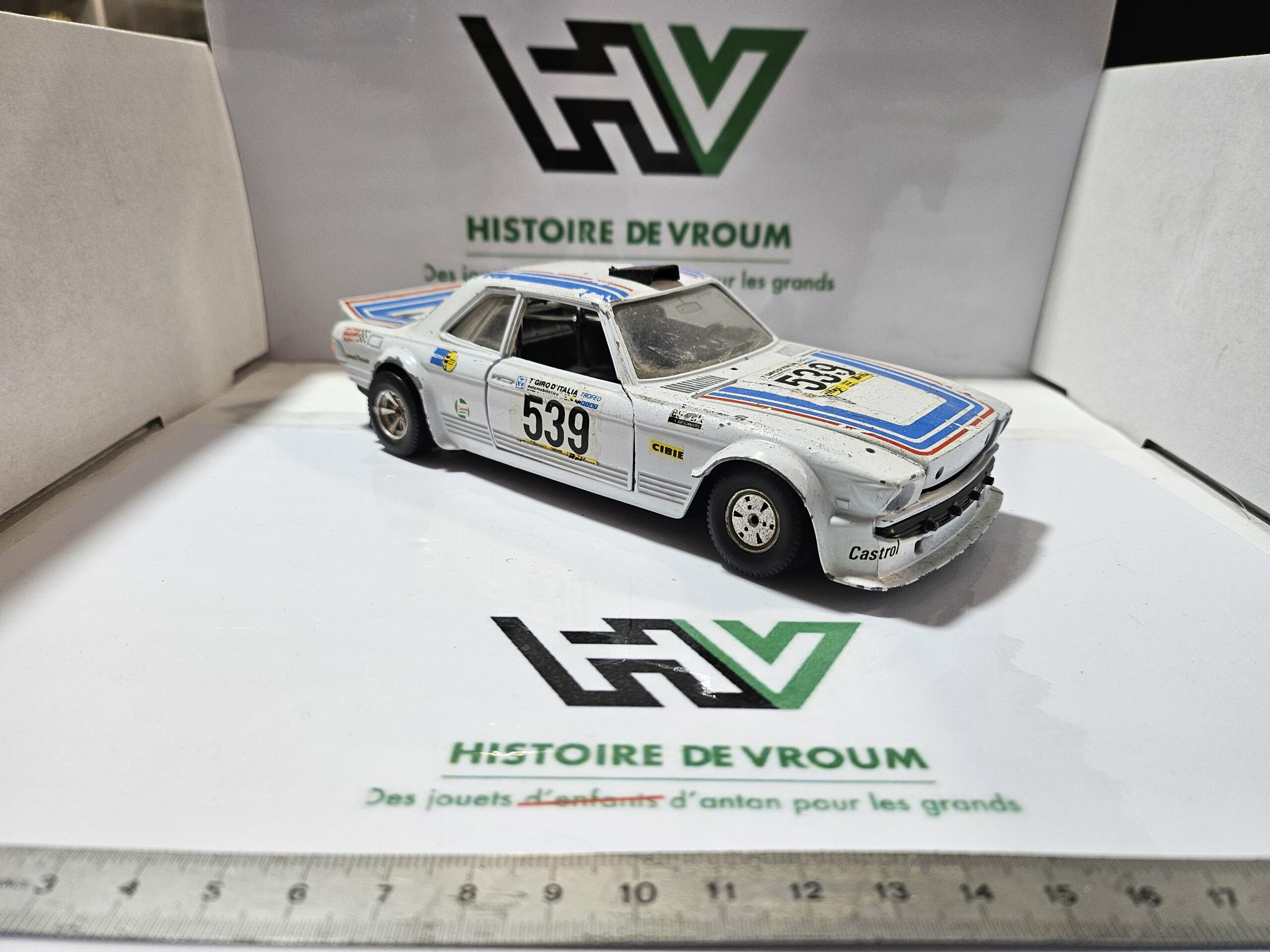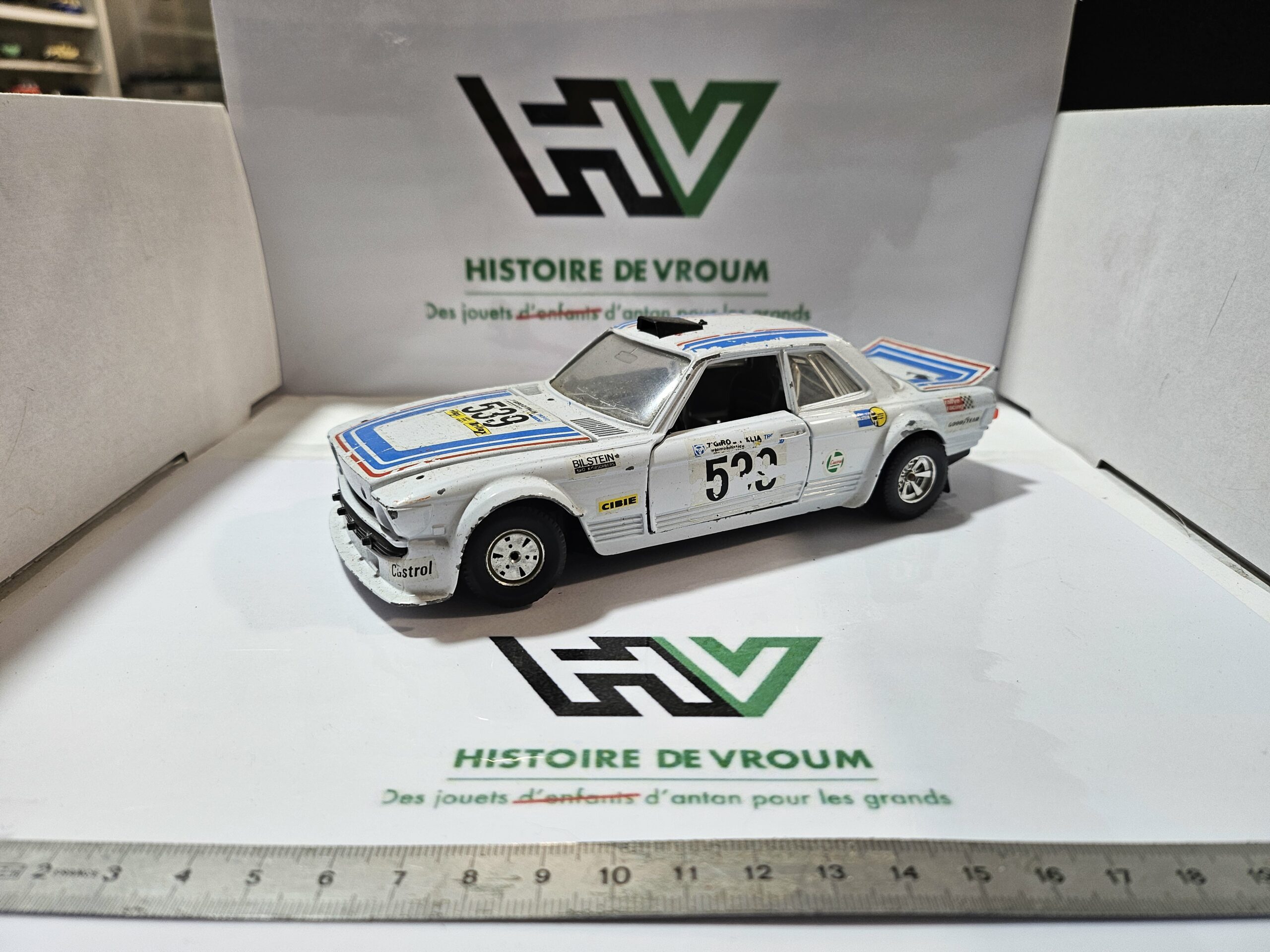 Description : Vends miniature de collection Mercedes 450 SL (C107) à l’échelle 1/24, fabriquée en Italie par Bburago (Référence 0165). Il s’agit de la version Rallye avec sa livrée blanche “Giro d’Italia” portant le numéro 539.