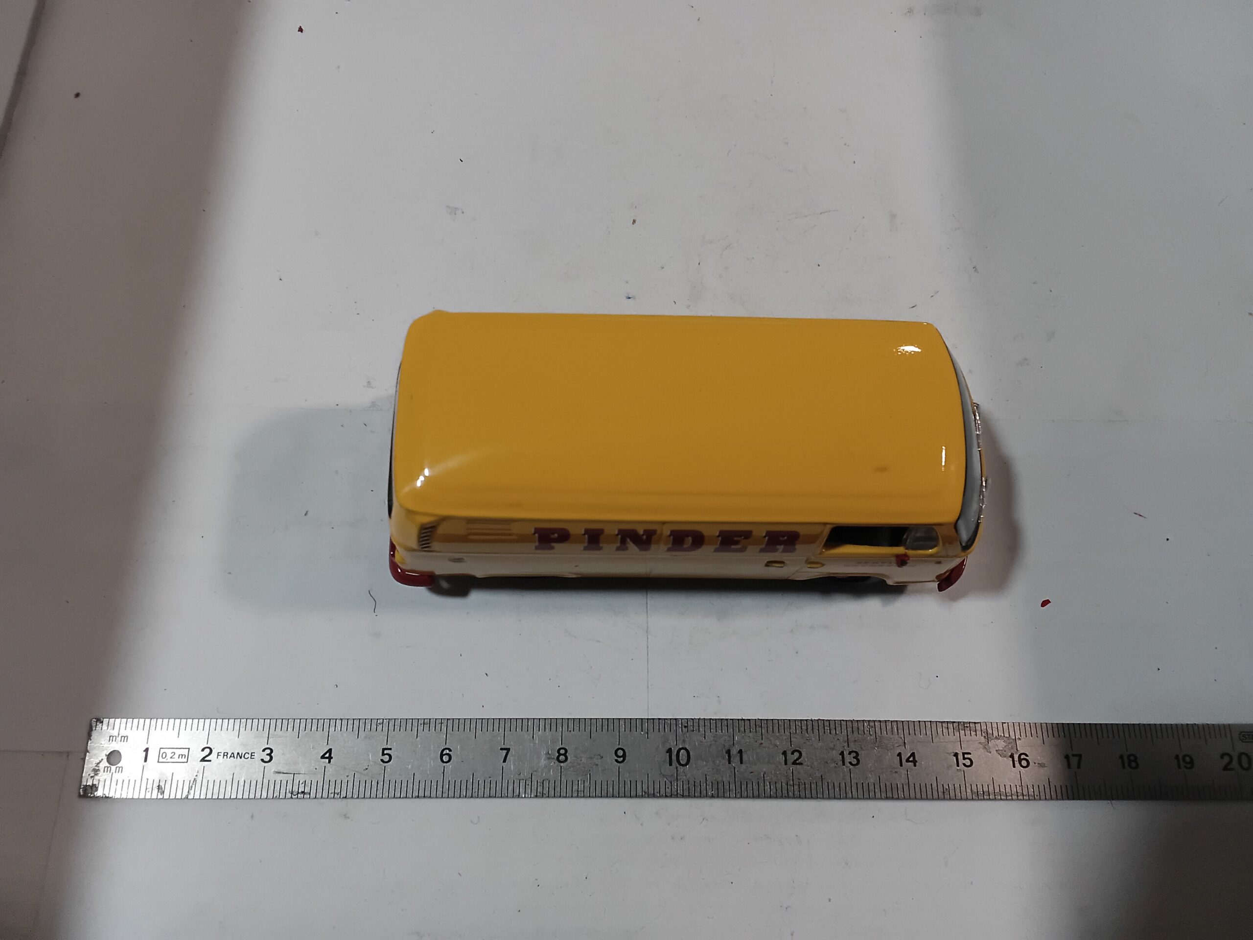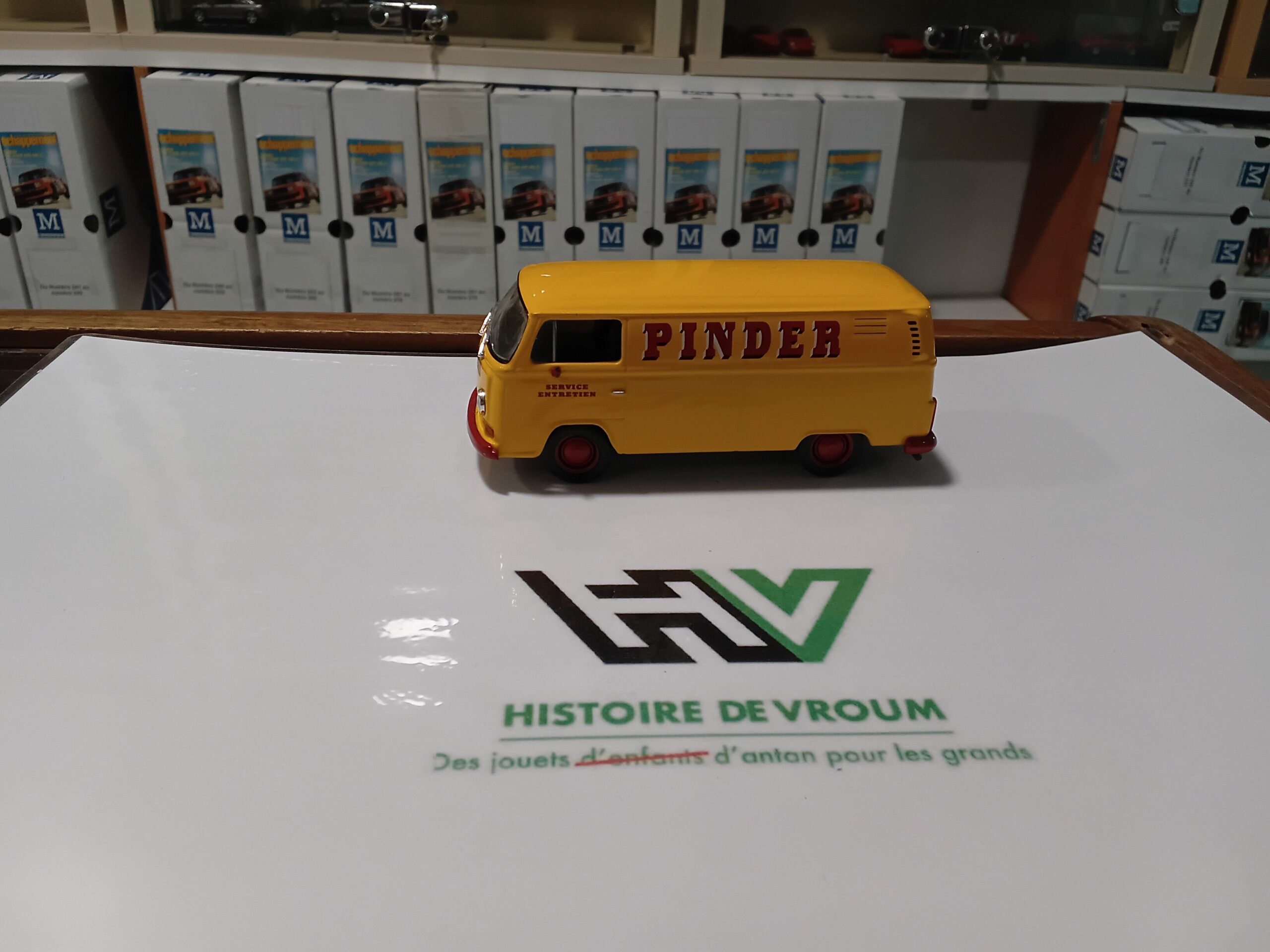 | Particularités | Ce modèle représente l’unité mobile de maintenance du cirque. Il se distingue par son logo Pinder sur les flancs et sa mention “Service Entretien” à l’arrière ou sur les portes. Les versions Solido sont robustes et fidèles, avec les pare-chocs blancs caractéristiques. |